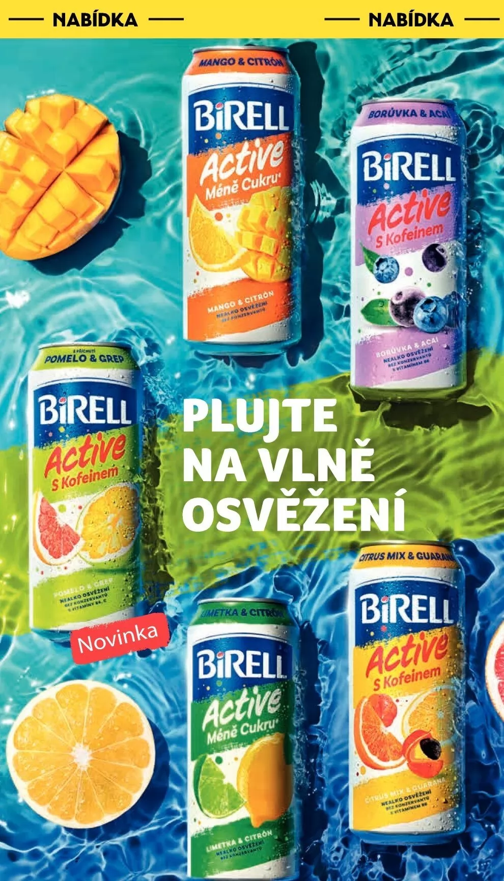 Biřell Active S Kofeinem Pomelo & Grep - Nealkoholický nápoj - 0,5l - Cena: N/A - Sleva: N/A