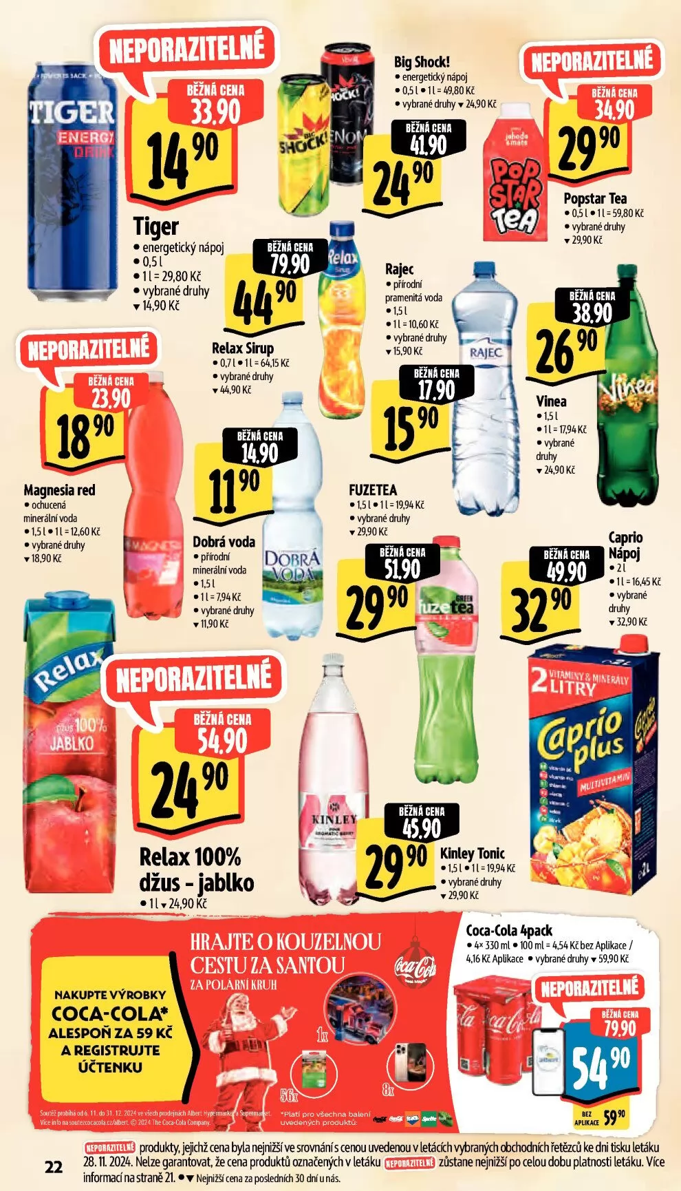 Pokud preferujete ochucené nápoje, vyzkoušejte Magnesii Red za 18,90 Kč nebo Fuze Tea za 29,90 Kč. Nezapomeňte také na Coca-Colu v 4-packu za 59,90 Kč.