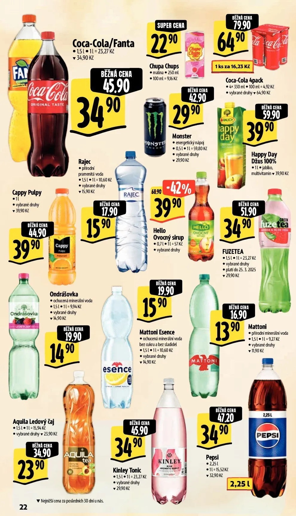 Nezapomeňte také na ledový čaj Aquila za 23,90 Kč a tonik Kinley za 32,90 Kč. Všechny produkty jsou vybrané druhy a ceny jsou platné do 25.3.2025. Navštivte nás a využijte super ceny!