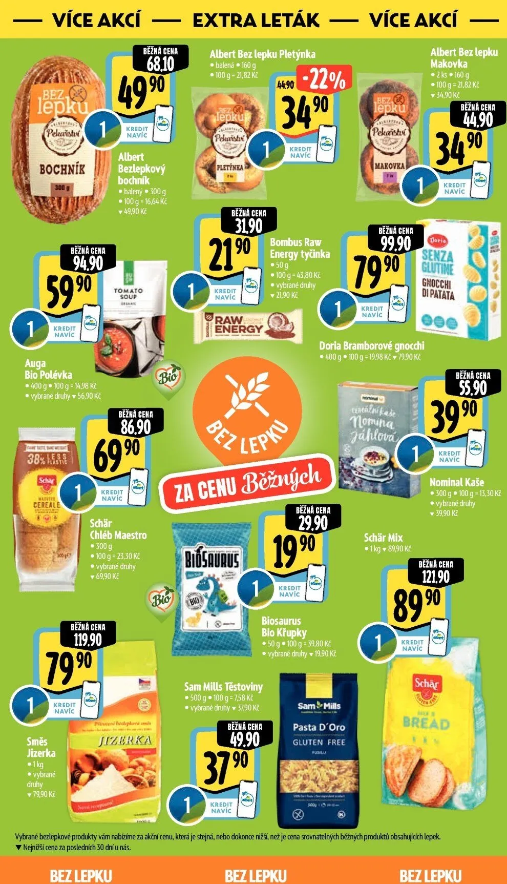 Nabídka zahrnuje také bramborové gnocchi, bio křupky Biosaurus a těstoviny Sam Mills. Všechny tyto produkty jsou cenově dostupné a často za ceny srovnatelné s běžnými produkty obsahujícími lepek. Nezapomeňte využít kredit navíc na vybrané položky!
