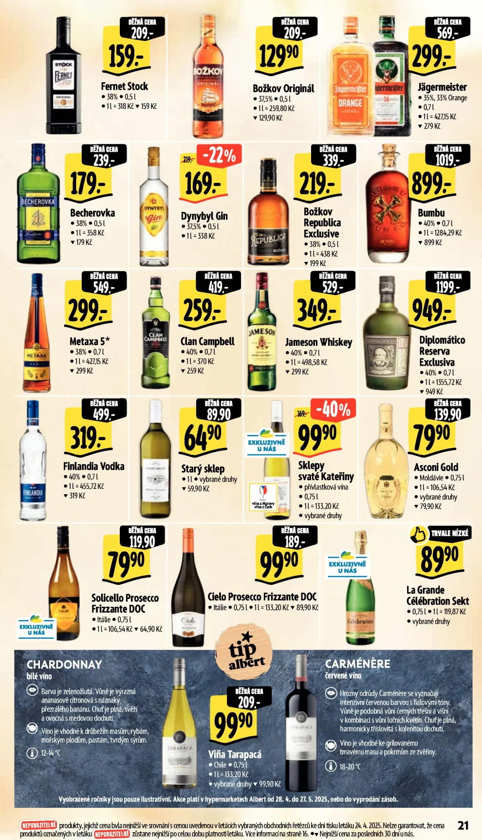 V letáku obchodu Albert najdete širokou nabídku exkluzivních produktů. Mezi nimi se objevují přívlastková vína z vinic Svaté Kateřiny, která jsou k dostání za 9990 Kč. Dále nabízíme Fernet Stock za 209 Kč a Becherovku za 179 Kč.