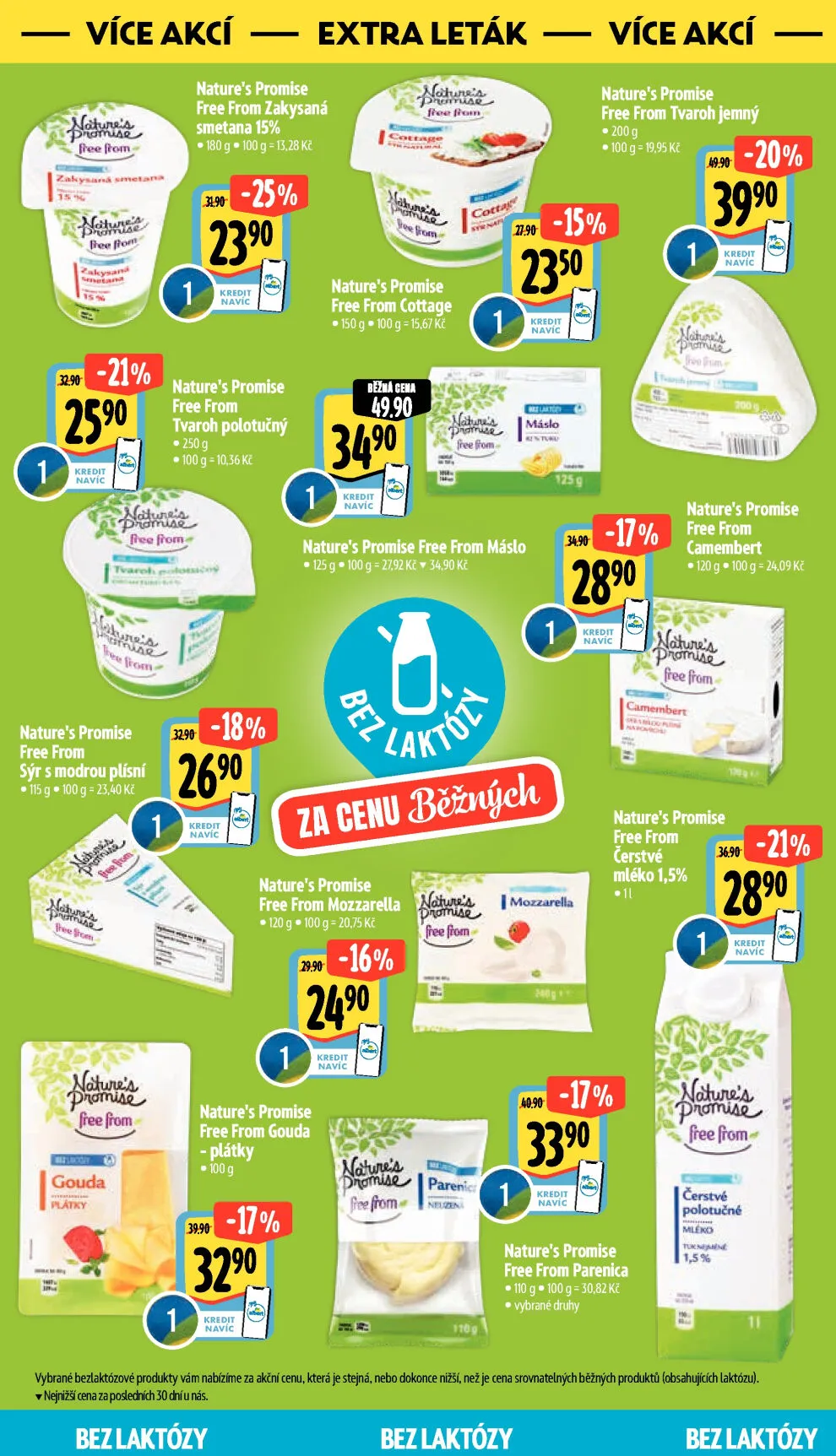V letáku obchodu Albert najdete širokou nabídku produktů značky Nature's Promise, které jsou bez laktózy. Mezi akčními položkami se objevují jemný tvaroh, zakysaná smetana 15%, polotučný tvaroh a cottage sýr. Dále si můžete vybrat z másla, camembertu, sýru s modrou plísní, čerstvého mléka 1,5%, mozzarelly a gouda plátků. Všechny tyto produkty jsou nabízeny za akční ceny, které jsou často nižší než ceny běžných výrobků obsahujících laktózu. Nezapomeňte využít speciální nabídky a ušetřit!