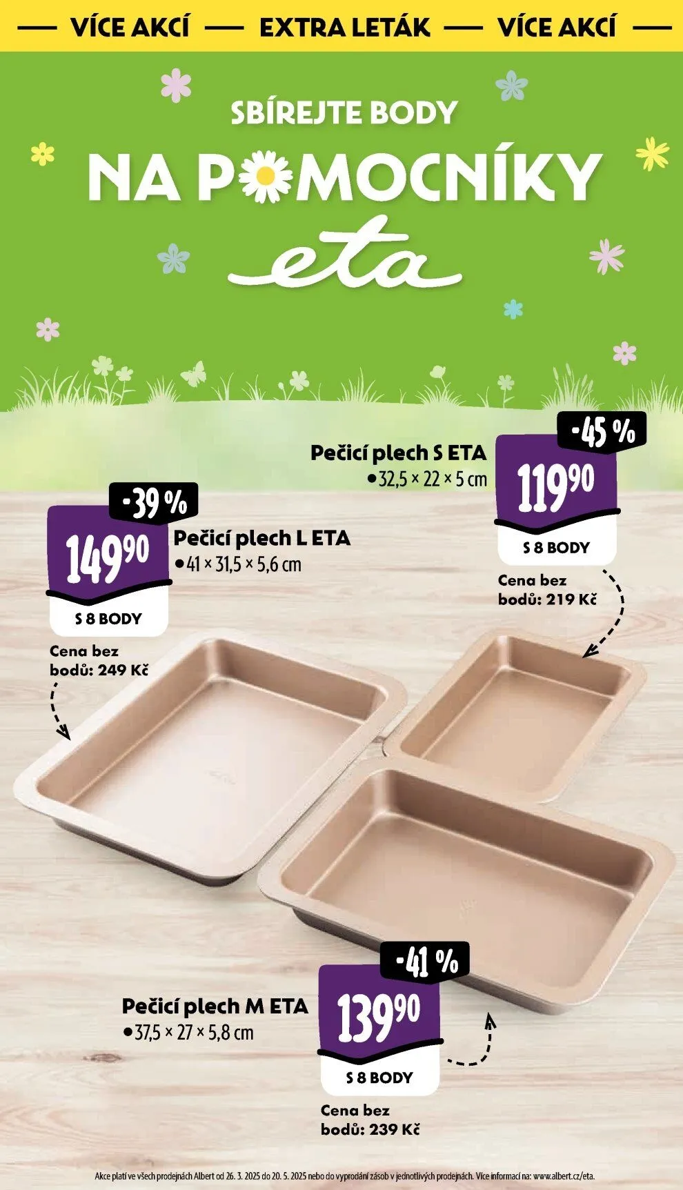 Akce platí ve všech prodejnách od 26.3.2025 do 20.5.2025 nebo do vyprodání zásob. Více informací naleznete na www.albert.cz/eta.