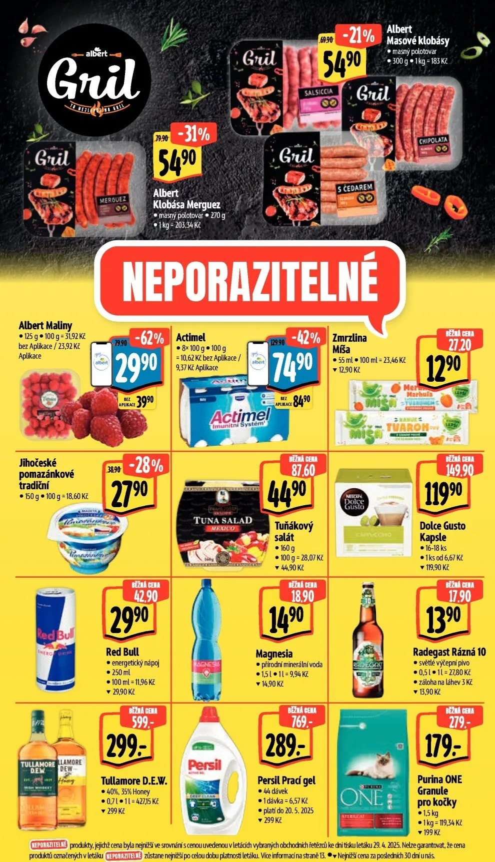 V letáku obchodu Albert najdete širokou nabídku produktů za výhodné ceny. Mezi nimi jsou masové klobásy a tradiční jihočeské pomazánkové, které potěší každého milovníka kvalitních potravin. Nezapomeňte také na energetický nápoj Red Bull a lahodnou zmrzlinu Míša, ideální pro osvěžení v horkých dnech. Pro milovníky ryb je tu tuňákový salát, který je skvělou volbou na rychlý oběd. A pokud máte domácí mazlíčky, granule Puma One pro kočky zajistí, že budou mít dostatek energie. Všechny tyto produkty jsou k dispozici za skvělé ceny, které potěší vaši peněženku.
