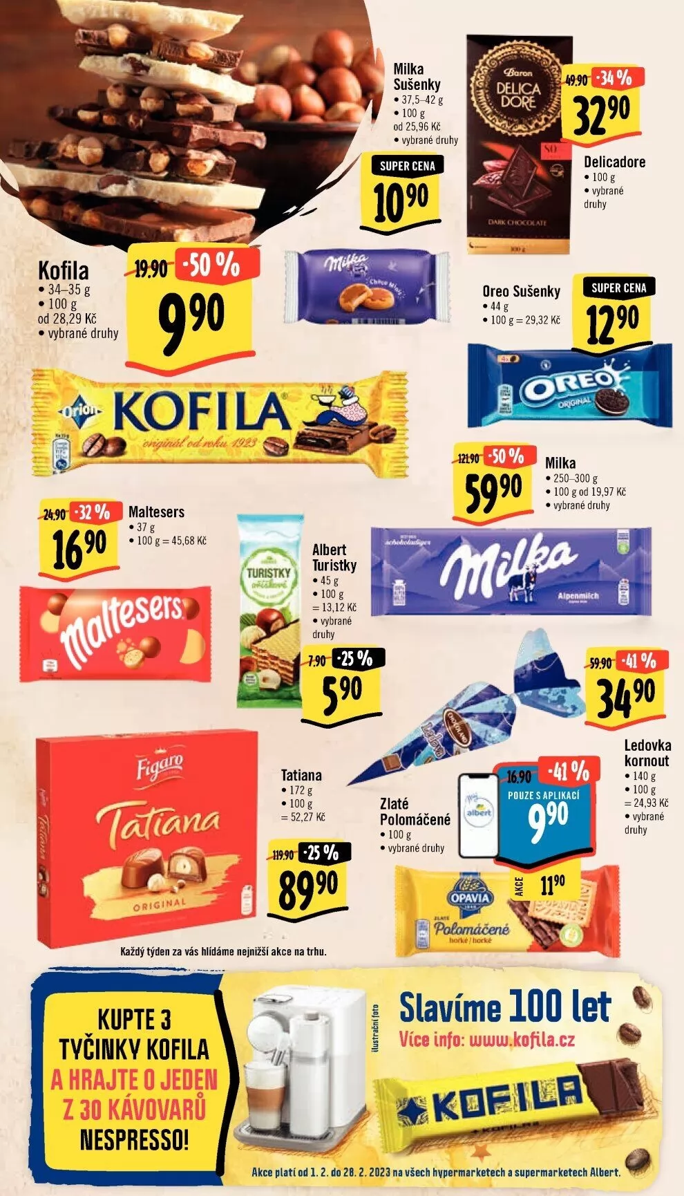 akce plati od l. 2. do 28.2.2023 na všech hvpermarketech a supermarketech albert.