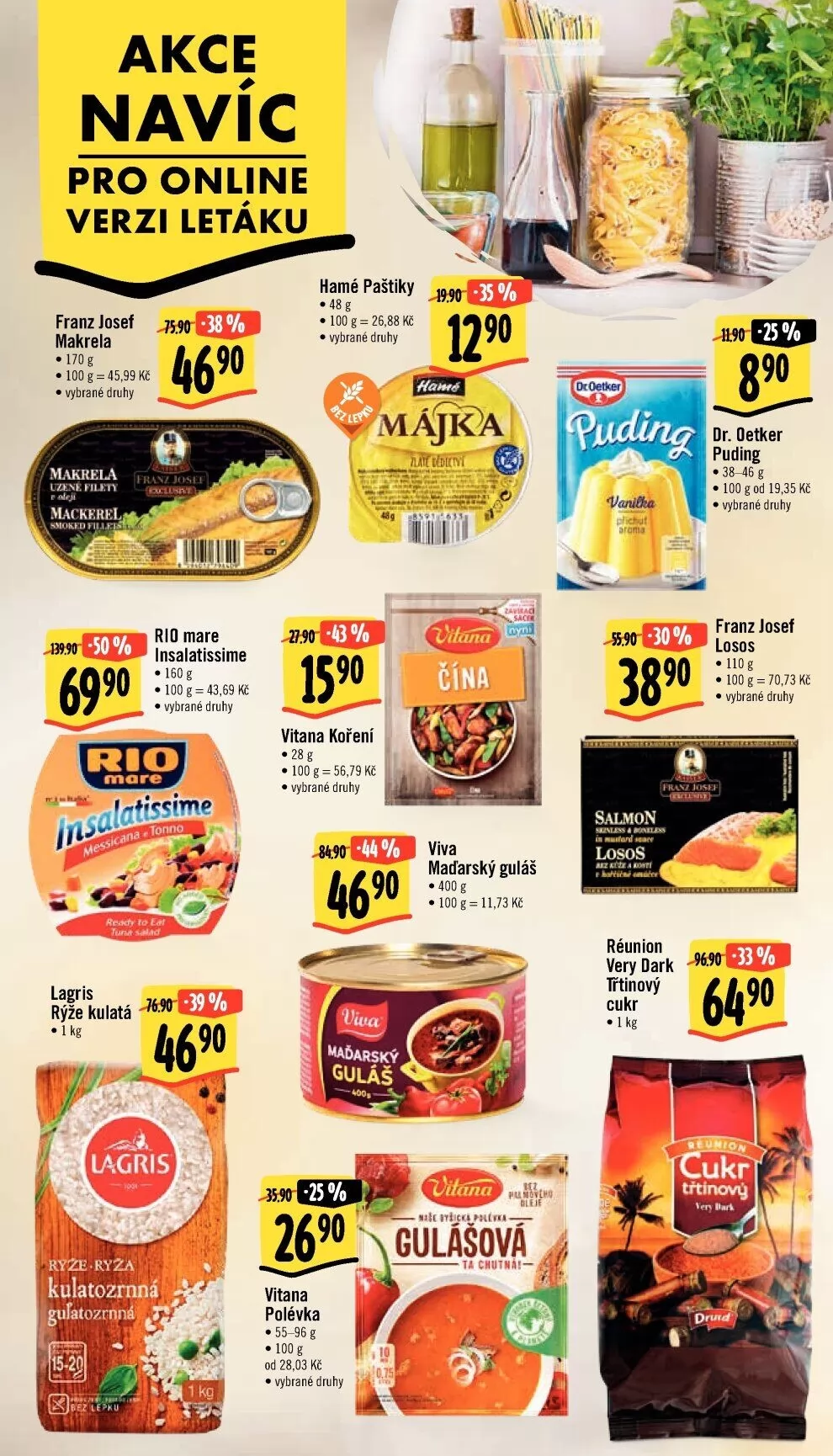 akce navíc pro online verzi letáku •380/0 franz josef -..759ľ makrela • vybrané druhy filety mackerel rio mare insalatissime • 160g • 100 43,69 kč hamé paštiky 48 g • 100 • vybrané druhy áji