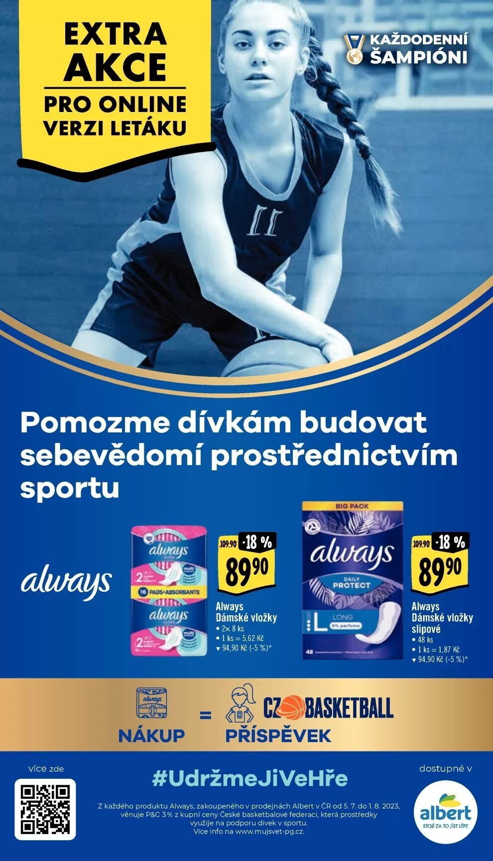 z každého produktu always, zakoupeného v prodejnách albert v od 5. 7, do 1.8 2023,