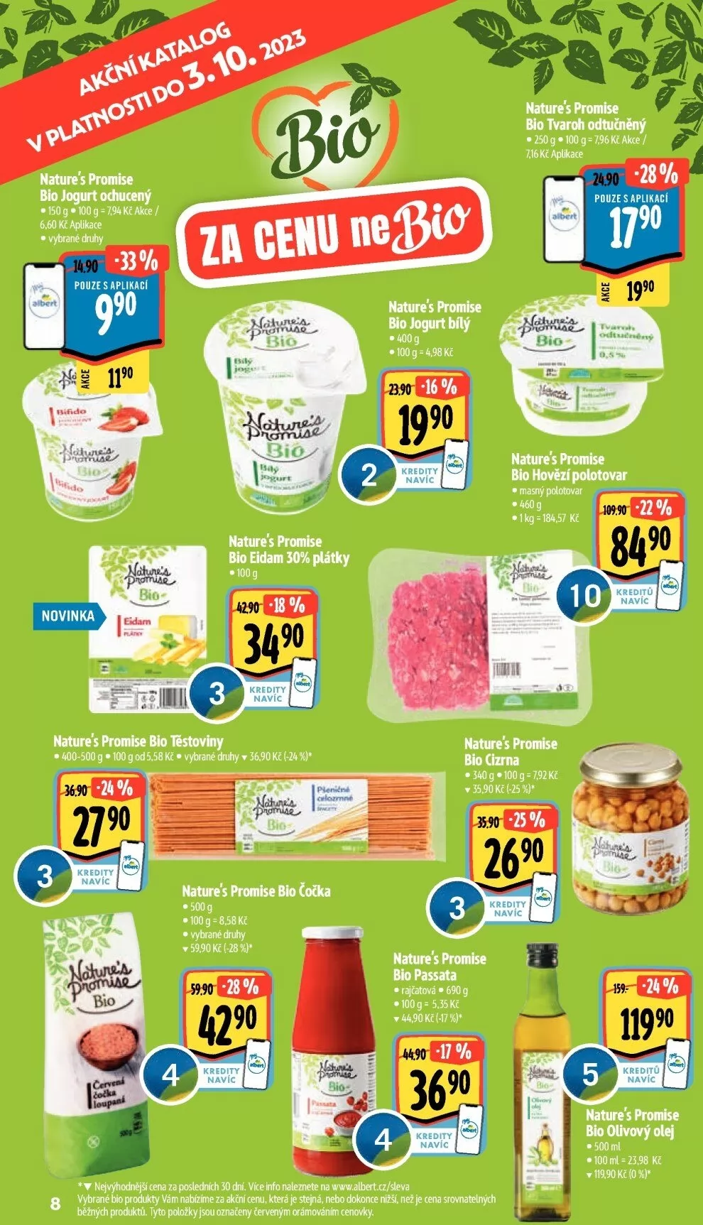 8 vybrané bioprodukty akčnícenu,kteráje stejná! nebo dokonce nižší, nežje cenasrovnatelných