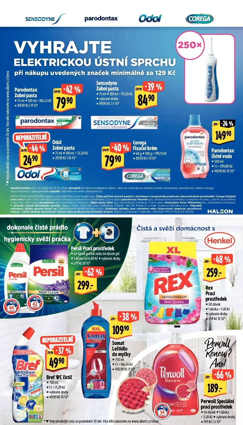 soutěž probihá od 4:10.2023 do 3110, 2023 na všech prodejmch albert. akce se vztahuje na wrobky značky sensodyne, parodontax, odol a corega