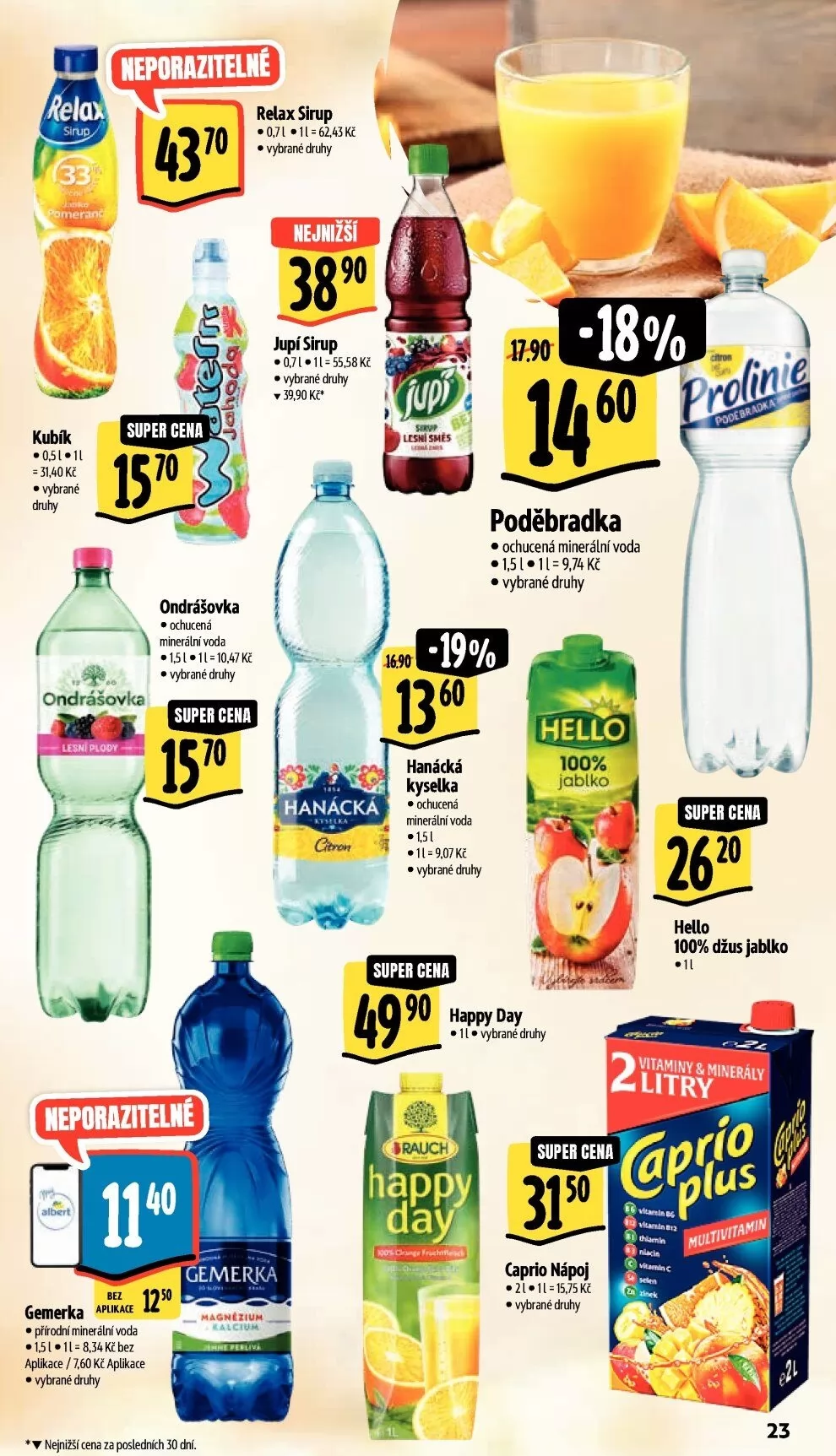 33 rineran kubík .0.51-11 • vybrané neporazitelné relax sirup • vybrané nejnižši 90 jupí sirup • vybra é duhy 39,90 super cena ondrášovka ochucená mineráln• voda 10,47 kč • wbrané druhy ondrášovka super cena neporazitelné emerka 1250 gemerka aplikace • přirodní minerální voda aplikace / 7,60 kč aplikace • vybrané druhy * v nejnižší cena za posledních 30 dní. poděbradka • ochucená minerální voda • vybrané druhy hello 100% jablko hanácká kyselka • ochucená minerální vtrh 1,51 vybrané drutry super cena super cena 100% džus jablko .11 happy day • il • vybrané druhy 'rauch h ppy kday 2lltr vitaminy & minerál super cena caprio nápoj '21-11-15,75kč • vybrané druhy 23