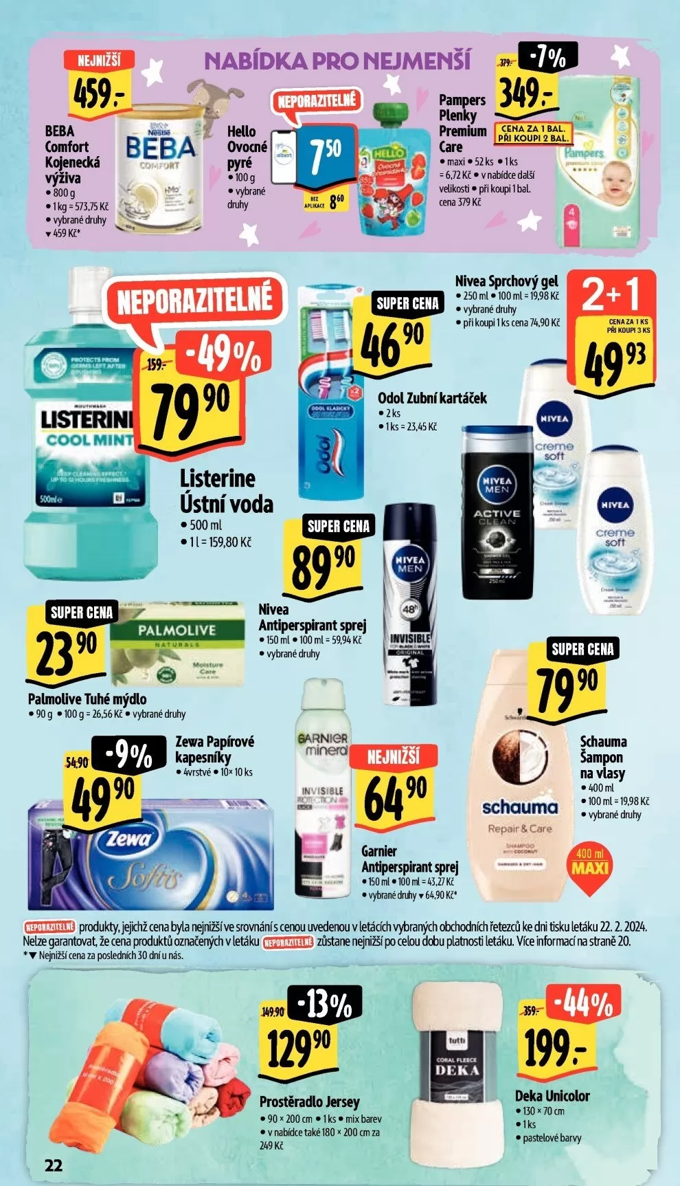 produkty, jejthž cena byla gnižší ve srovnání s uveden] v letácích vybraných obchodních řetezců ke dni tisku letáku 22.2.2024.