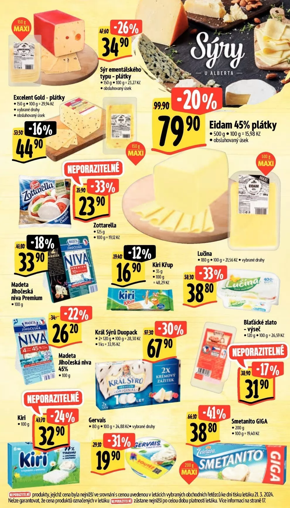 produkty, jejichž cena byla nejnižšíve srovnání s cenou v letácích $ranýth řetězců ke dni tisku letáku 21.3.2024.
