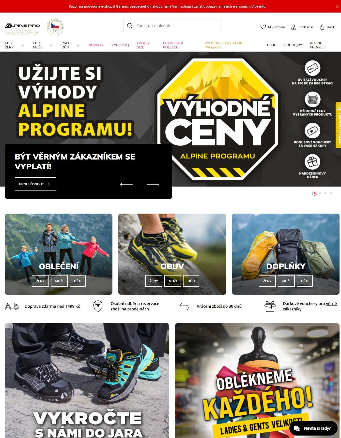 V letáku obchodu ALPINE PRO najdete širokou nabídku kvalitního outdoorového oblečení a vybavení pro ženy, muže i děti. Využijte výhodné ceny a speciální akce, které zahrnují dopravu zdarma při nákupu nad 1499 Kč. Nezapomeňte se zaregistrovat do ALPINE programu, kde získáte uvítací voucher na 100 Kč, bonusové vouchery za vaše nákupy a narozeninový dárek. V případě nespokojenosti můžete zboží vrátit do 30 dnů. Navštivte naše prodejny, kde si můžete zboží osobně vyzvednout nebo rezervovat. Objevte novinky a výprodeje a užijte si výhody věrného zákazníka!