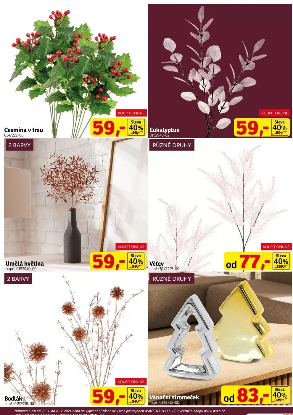 Nabídka platí od 21. listopadu do 4. prosince 2024 nebo do vyprodání zásob ve všech prodejnách ASKO a na e-shopu www.asko.cz.