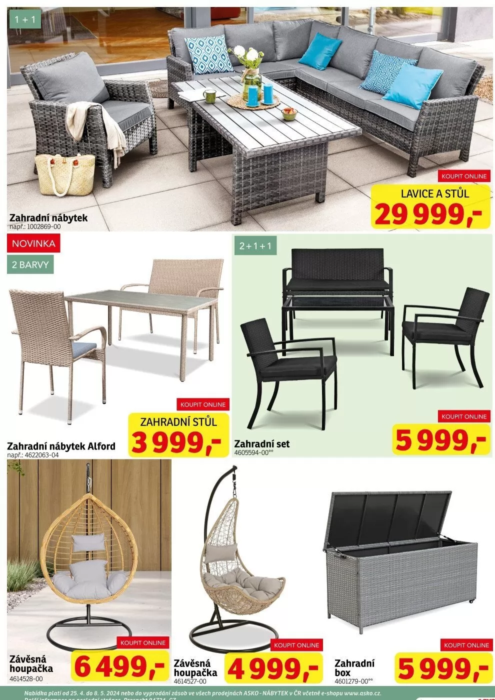 nabídka plati od 25.4. do 8, 5.2024 nebo do vyprodáni zásob ve všech prodejnách asko- nábytek v cr včetně e-shopu www.asko.cz.