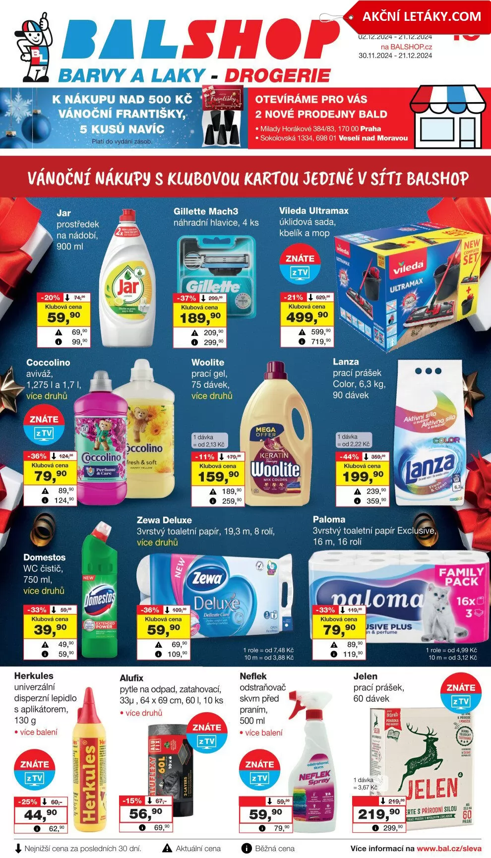 V letáku obchodu Barvy a laky drogerie najdete širokou nabídku produktů za skvělé ceny. Při nákupu nad 500 Kč získáte vánoční františky jako dárek. Mezi novinkami jsou dvě prodejny v Praze a ve Veselí nad Moravou.