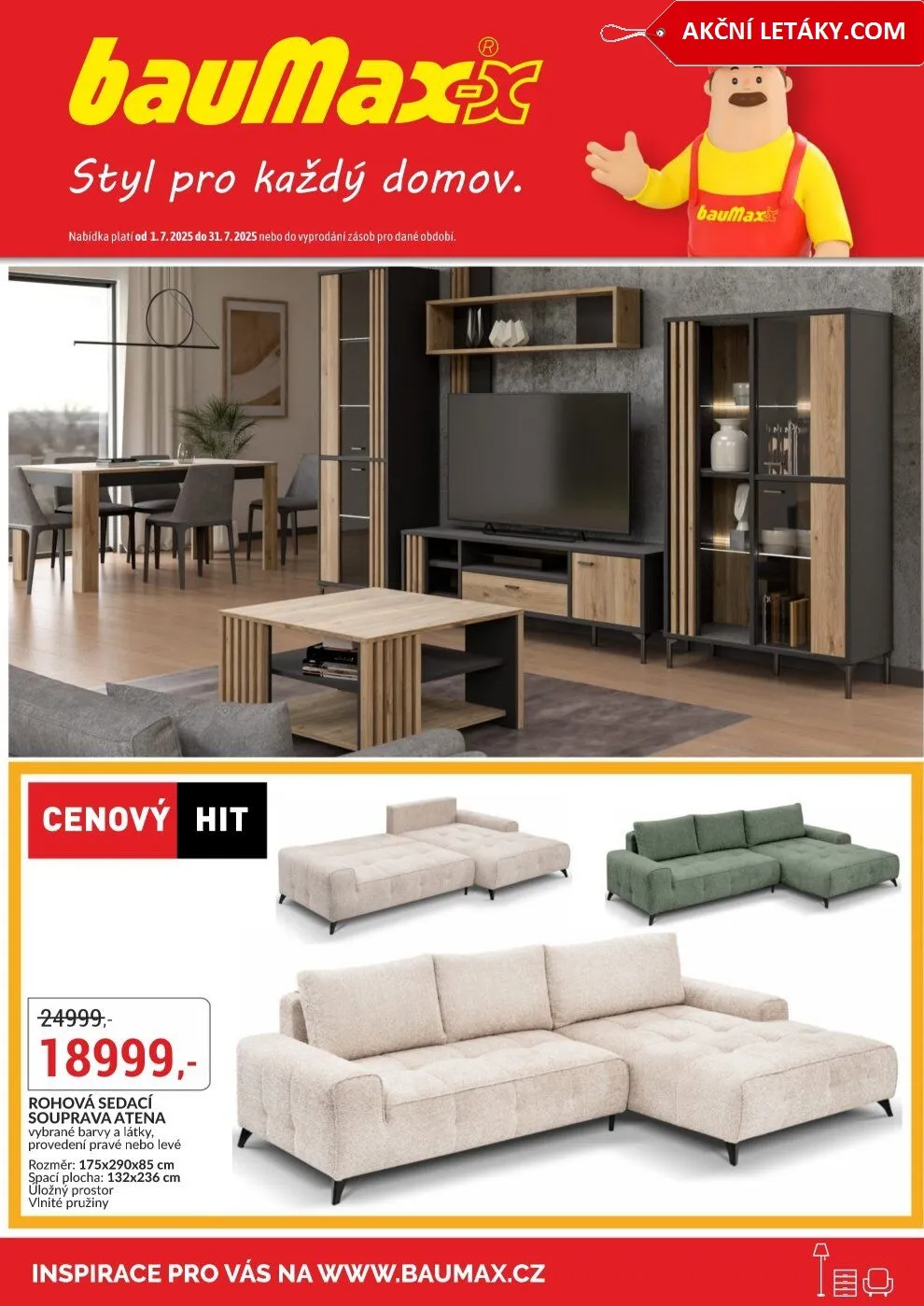 V letáku obchodu bauMax najdete širokou nabídku produktů pro každý domov. Od 1.7.2025 do 31.7.2025 nebo do vyprodání zásob můžete zakoupit rohovou sedací soupravu za cenu 18 999 Kč. Tato souprava je dostupná ve vybraných barvách a látkách, s možností pravého nebo levého provedení. Rozměry soupravy jsou 175x290x85 cm a nabízí ložný prostor a vlnité pružiny pro maximální pohodlí. Pro více inspirace navštivte www.baumax.cz.