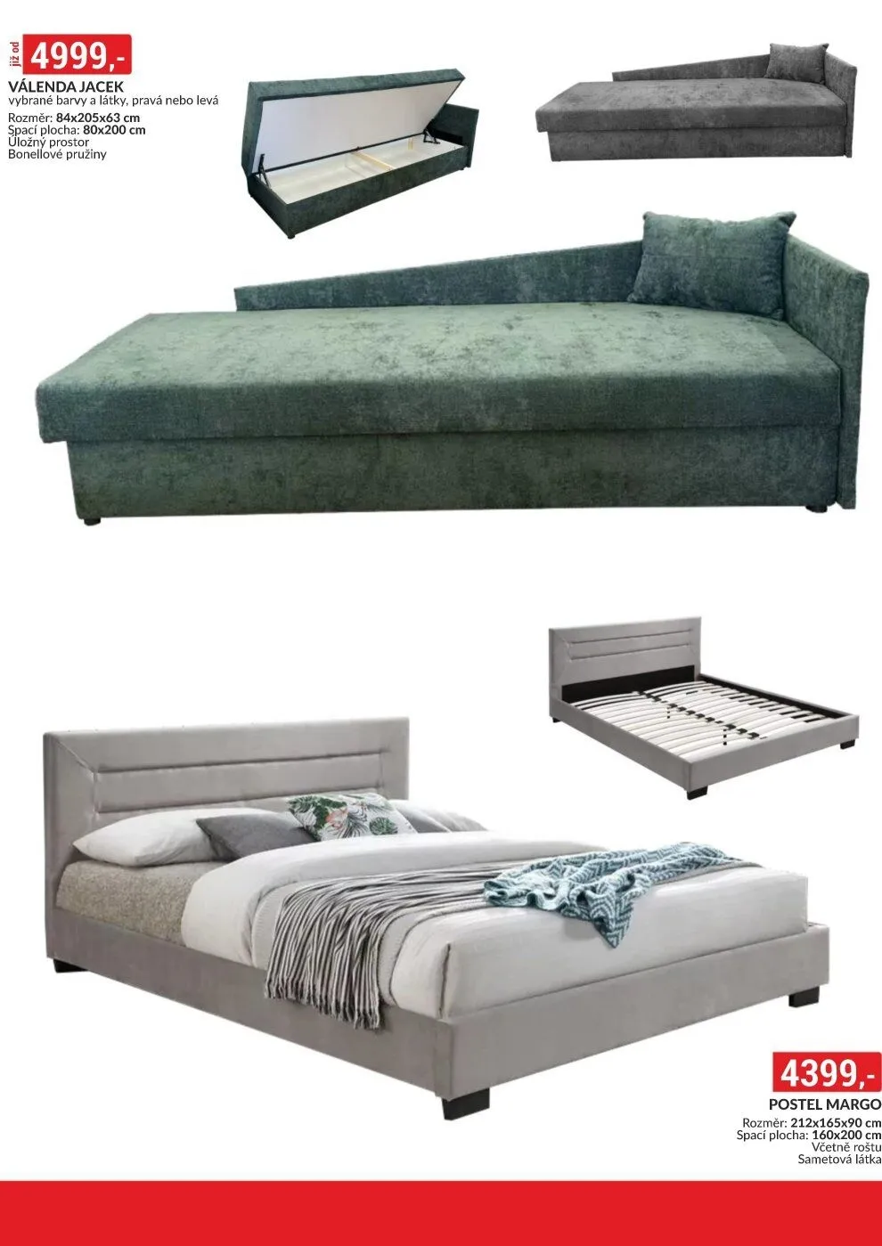Válenda Jacek je k dispozici za 4999 Kč, nabízí vybrané barvy a látky, pravou nebo levou variantu. Její rozměry jsou 84x205x63 cm a spací plocha činí 80x200 cm. Navíc disponuje úložným prostorem a bonellovými pružinami.
