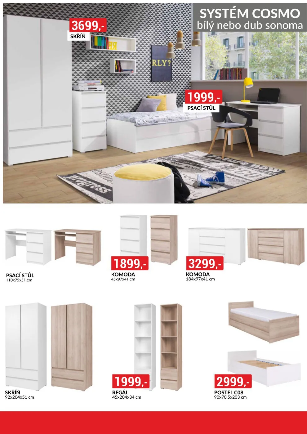 Nezapomeňte se podívat na regál systému Cosmo, který je k dispozici v bílé nebo dub sonoma barvě za 1999,-.