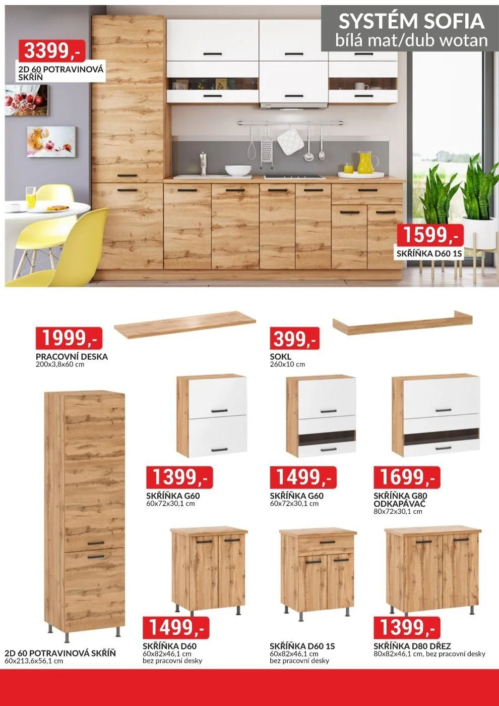 Potravinová skříň systém Sofia v bílé matné barvě s dubem Wotan je nabízena za 1599,- Kč.