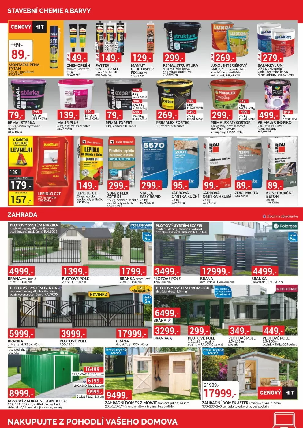 Mezi cenovými hity se objevují produkty jako Remal stěrka za 79,- Kč a Chemoprén univerzální lepidlo za 139,- Kč.