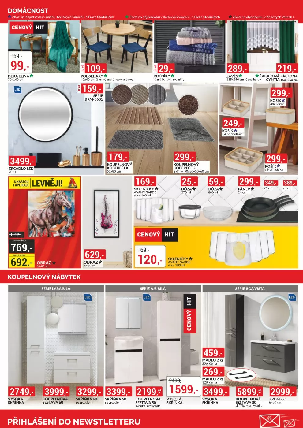 Pokud hledáte něco do domácnosti, můžete si pořídit podsedáky za 109 Kč nebo žakárovou záclonu Cyntia za 299 Kč. Nezapomeňte také na praktické dózy a skleničky Avant Garde, které začínají na ceně 25 Kč.