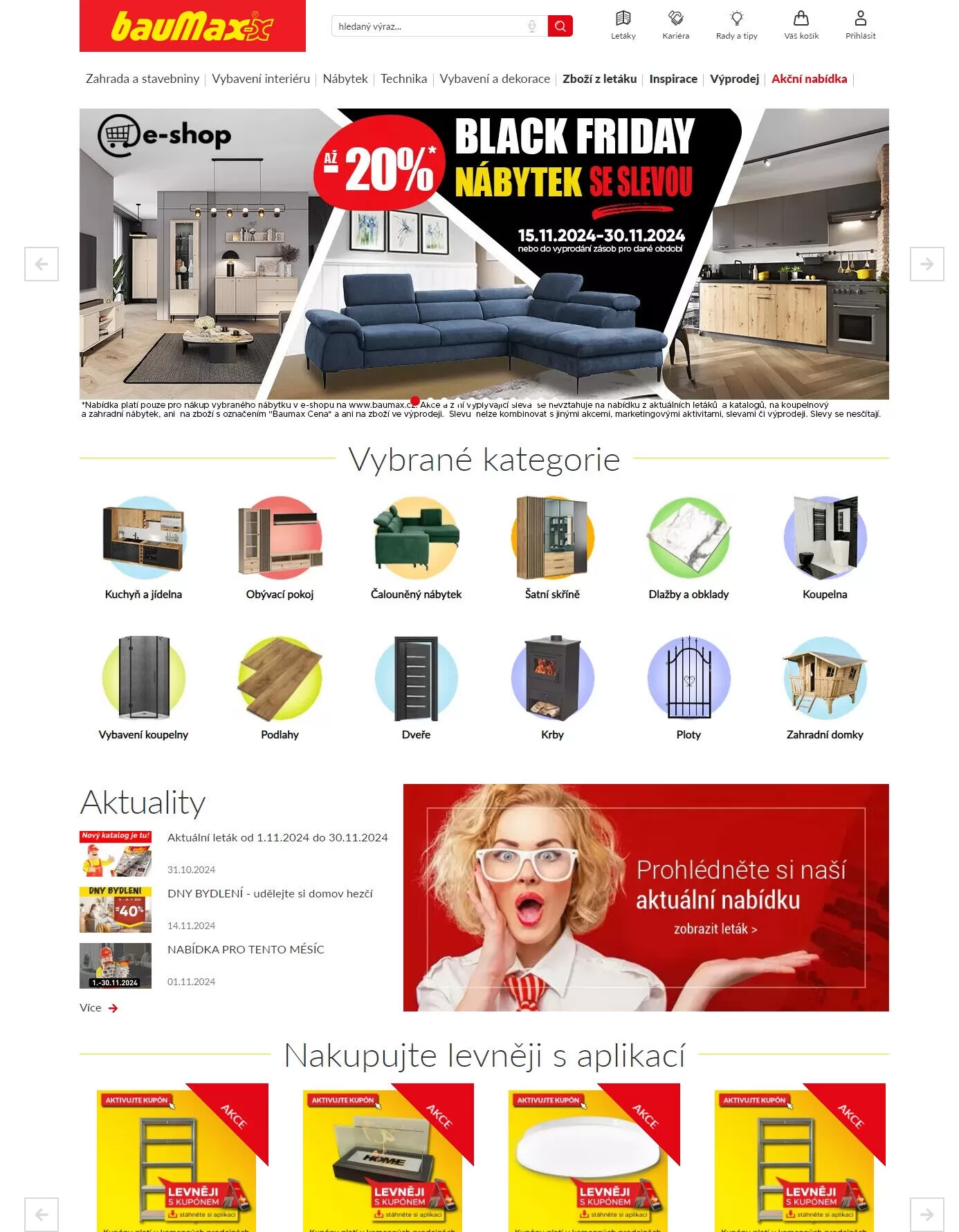 V letáku obchodu bauMax najdete širokou nabídku produktů pro vaši zahradu, stavebniny a vybavení interiéru. Aktuální akční nabídka platí od 1.11.2024 do 30.11.2024 a zahrnuje slevy na vybraný nábytek, kuchyňské a jídelní vybavení, obývací pokoje, podlahy, čalouněný nábytek, šatní skříně, dlažby a obklady. Nezapomeňte také na vybavení koupelny a zahradní domky. Pro více inspirace a aktuální nabídku navštivte náš e-shop. Nakupujte levněji s aplikací a aktivujte kupon pro další slevy!