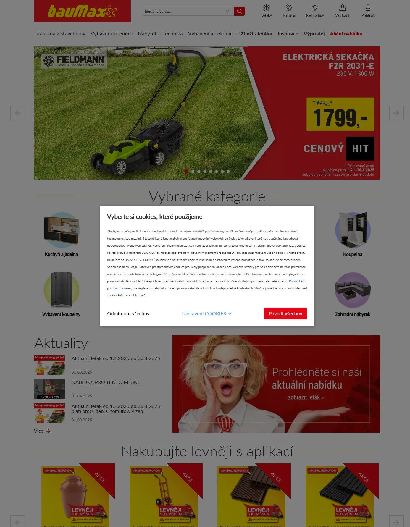 V letáku obchodu bauMax najdete širokou nabídku produktů pro vaši zahradu a domácnost. Mezi akčními nabídkami se objevuje elektrická sekačka Fieldmann FZR 2031-E za skvělou cenu 1799 Kč. Tato nabídka platí od 1.4. do 30.4.2023 nebo do vyprodání zásob. Dále si můžete vybrat z vybavení do kuchyně, koupelny a zahradního nábytku. Nezapomeňte se podívat na aktuální leták a využít výhodné nabídky!