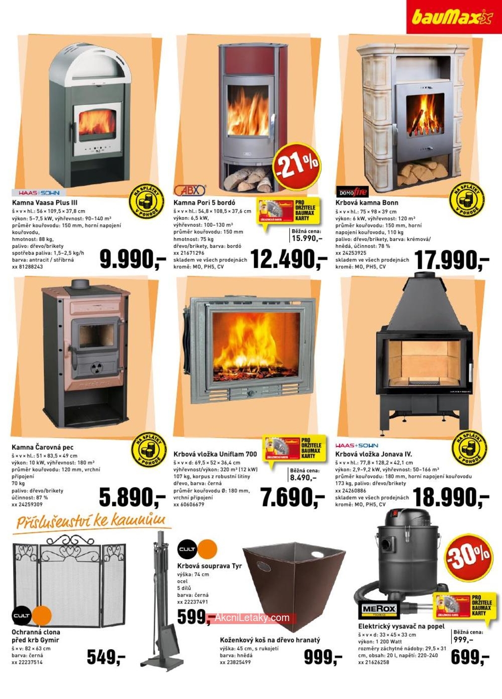 bauMax Krbová kamna, krbová vložka, krbové příslušenství výprodej, akční leták
