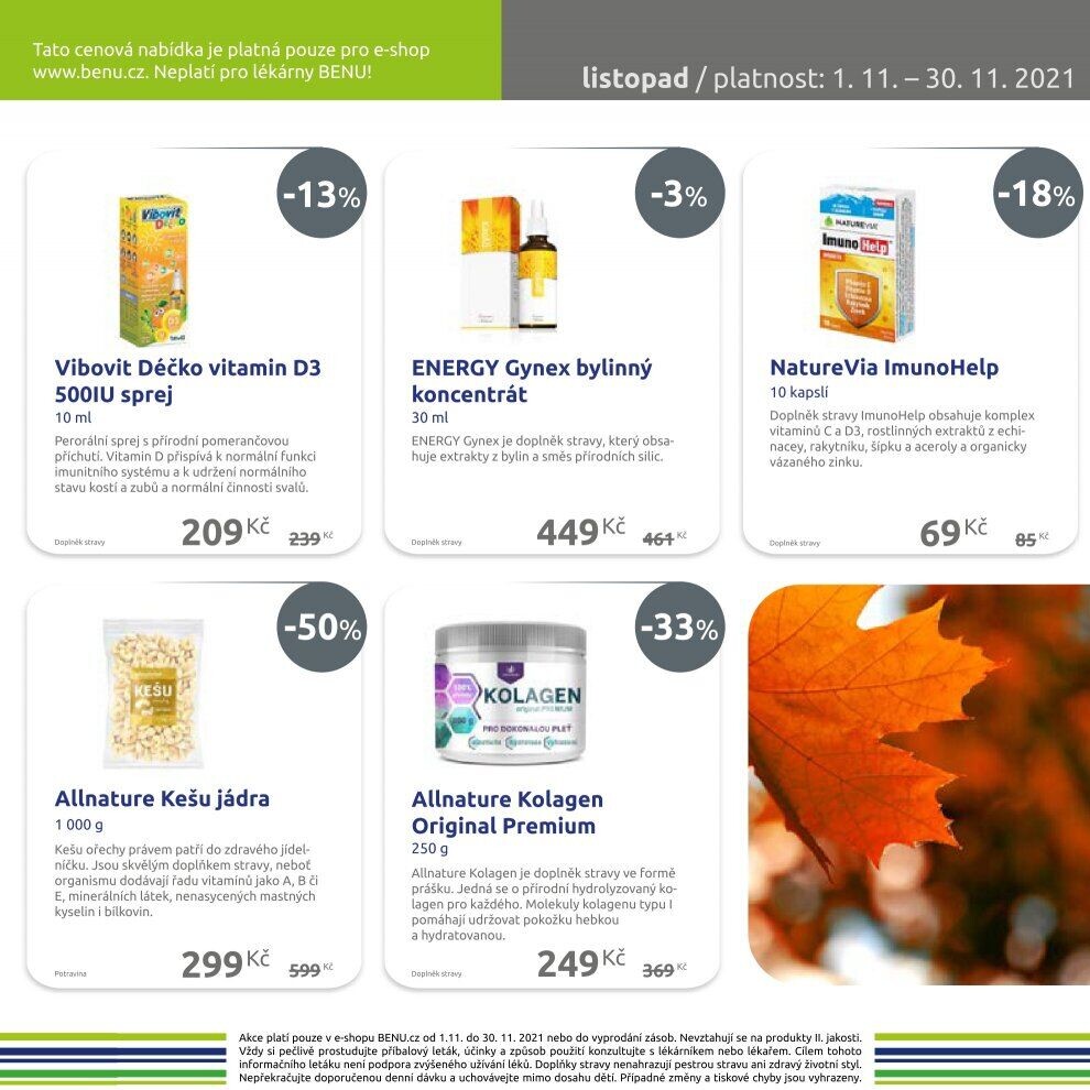 akce plati pouze v e•shopu benu.cz od 1.11. do 30.11. 2021 nebo do vyprodání zásob. nevztahují se na il jakosti.