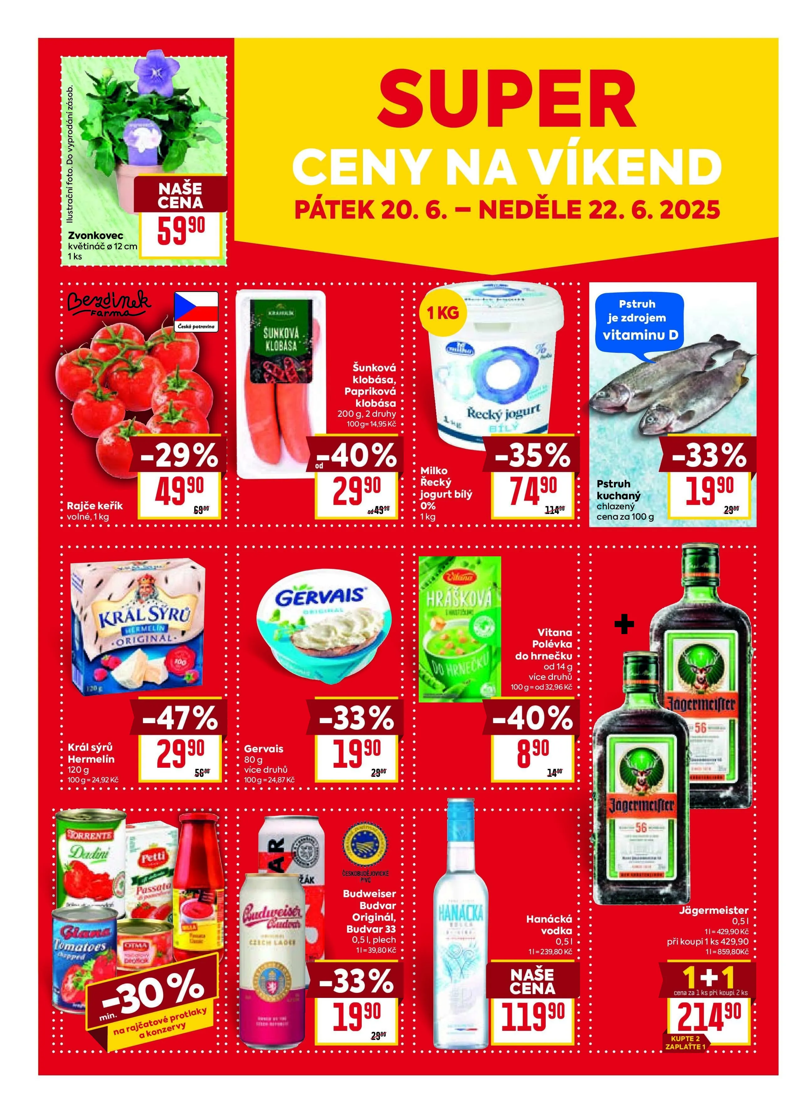 V letáku obchodu BILLA najdete skvělé víkendové nabídky od pátku 20.6. do neděle 22.6.2025. Nabízíme šunkovou klobásu za 29% sleva, 200g za 49,90 Kč. Nezapomeňte také na řecký jogurt bílý Gervais, který je nyní za 33% sleva, cena 19,90 Kč. Další zajímavou nabídkou je Budvar 33, také se slevou 33%, za 19,90 Kč. Pro milovníky polévek máme Vitana polévku se slevou 40%, cena 8,90 Kč. A nezapomeňte na naše králsýru, které je nyní za 47% sleva, cena 11,990 Kč. Přijďte si pro své oblíbené produkty a využijte skvělé ceny!