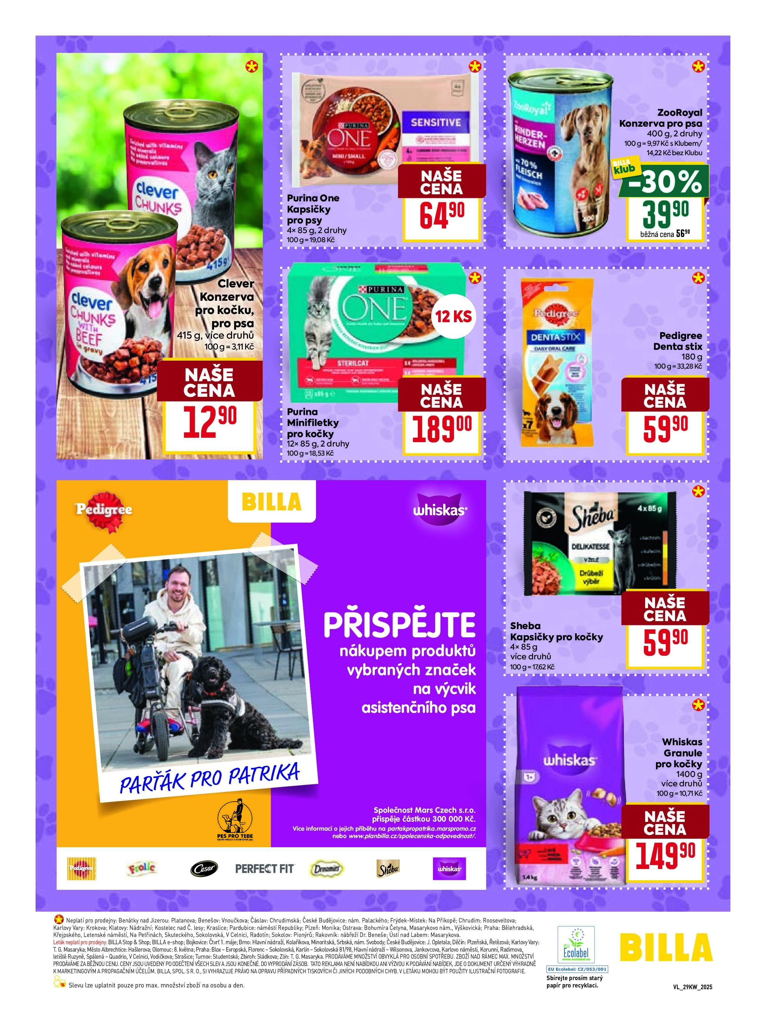 V letáku obchodu BILLA najdete širokou nabídku produktů pro vaše domácí mazlíčky. Nabízíme konzervy pro psy a kočky, které jsou dostupné v různých variantách. Například konzerva pro psa o hmotnosti 400 g je k dispozici za skvělou cenu. Pro kočky máme také kapsičky a mini filety, které potěší každého mňoukajícího miláčka.