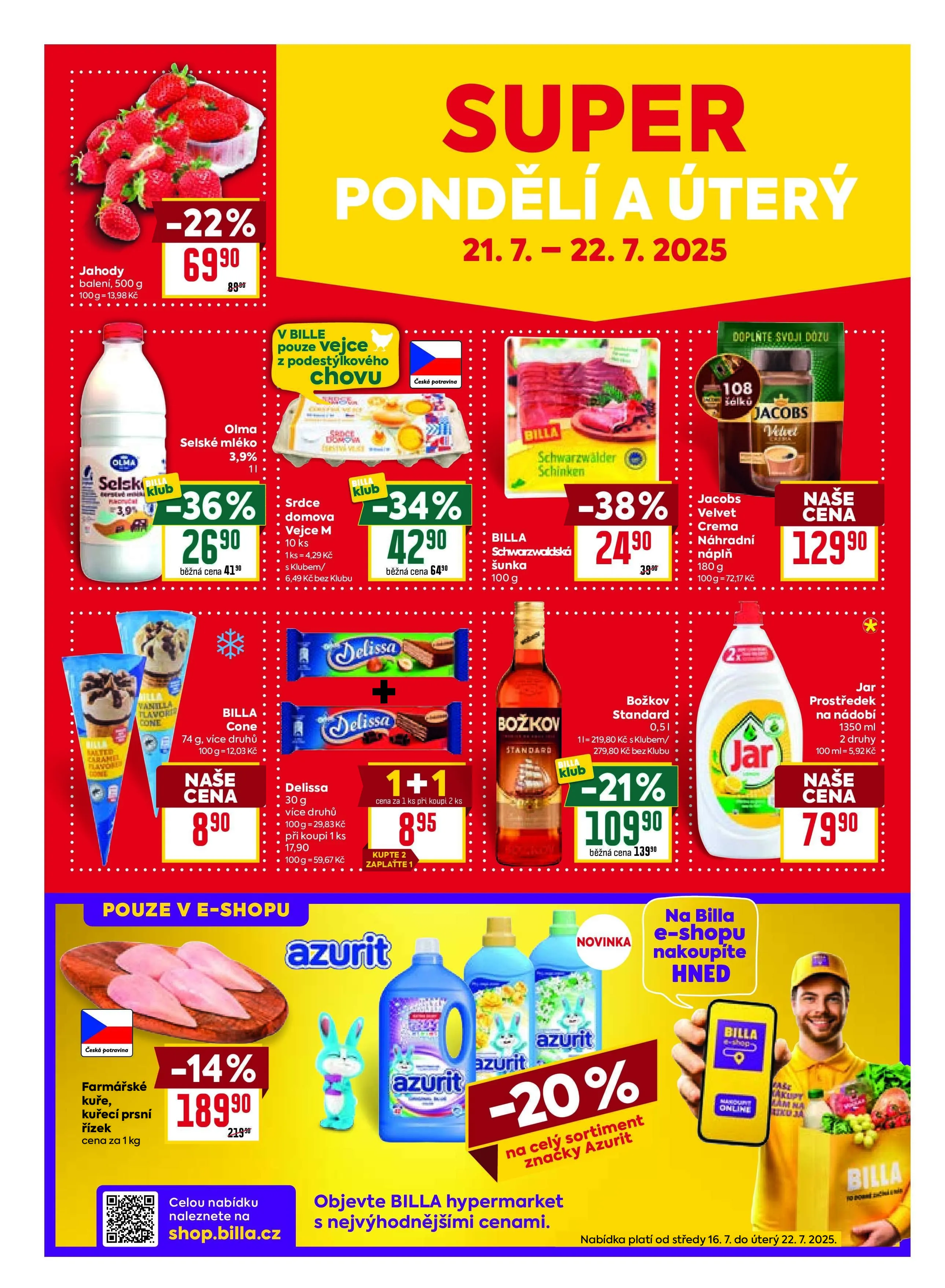 V letáku obchodu BILLA na období 21.7. - 22.7. 2025 najdete skvělé akční nabídky.