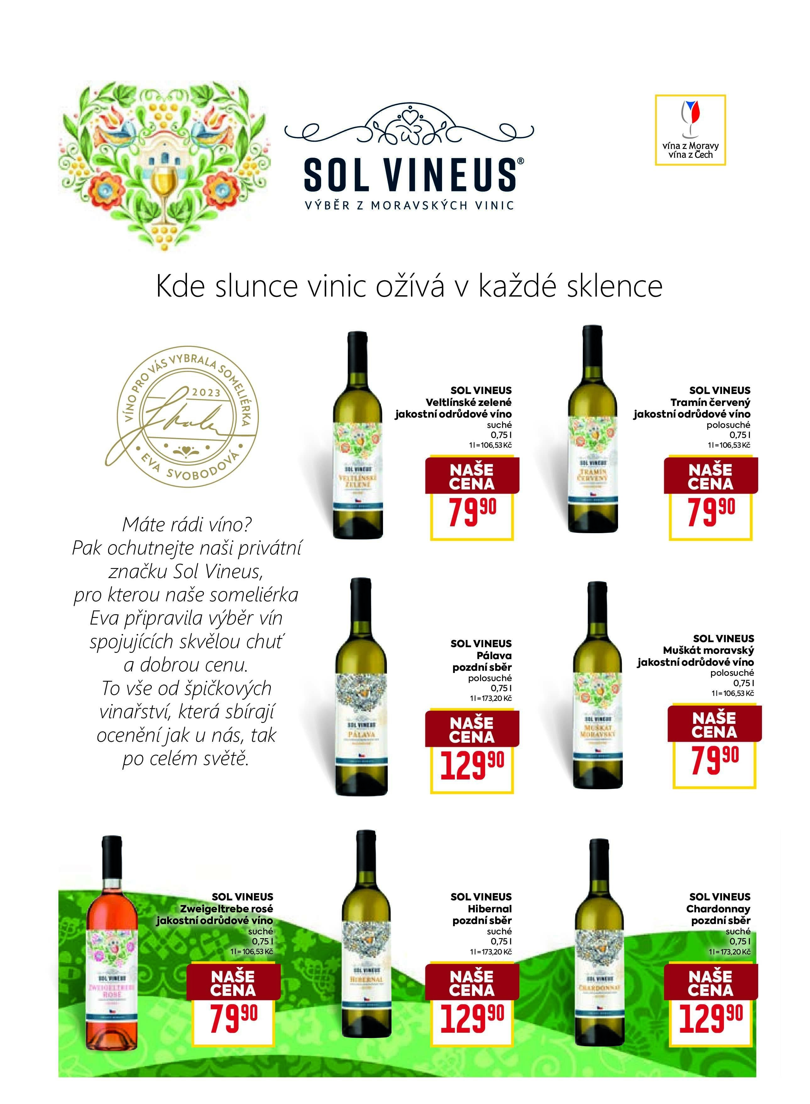 V letáku obchodu BILLA najdete skvělou nabídku vín pod privátní značkou Sol Vineus.