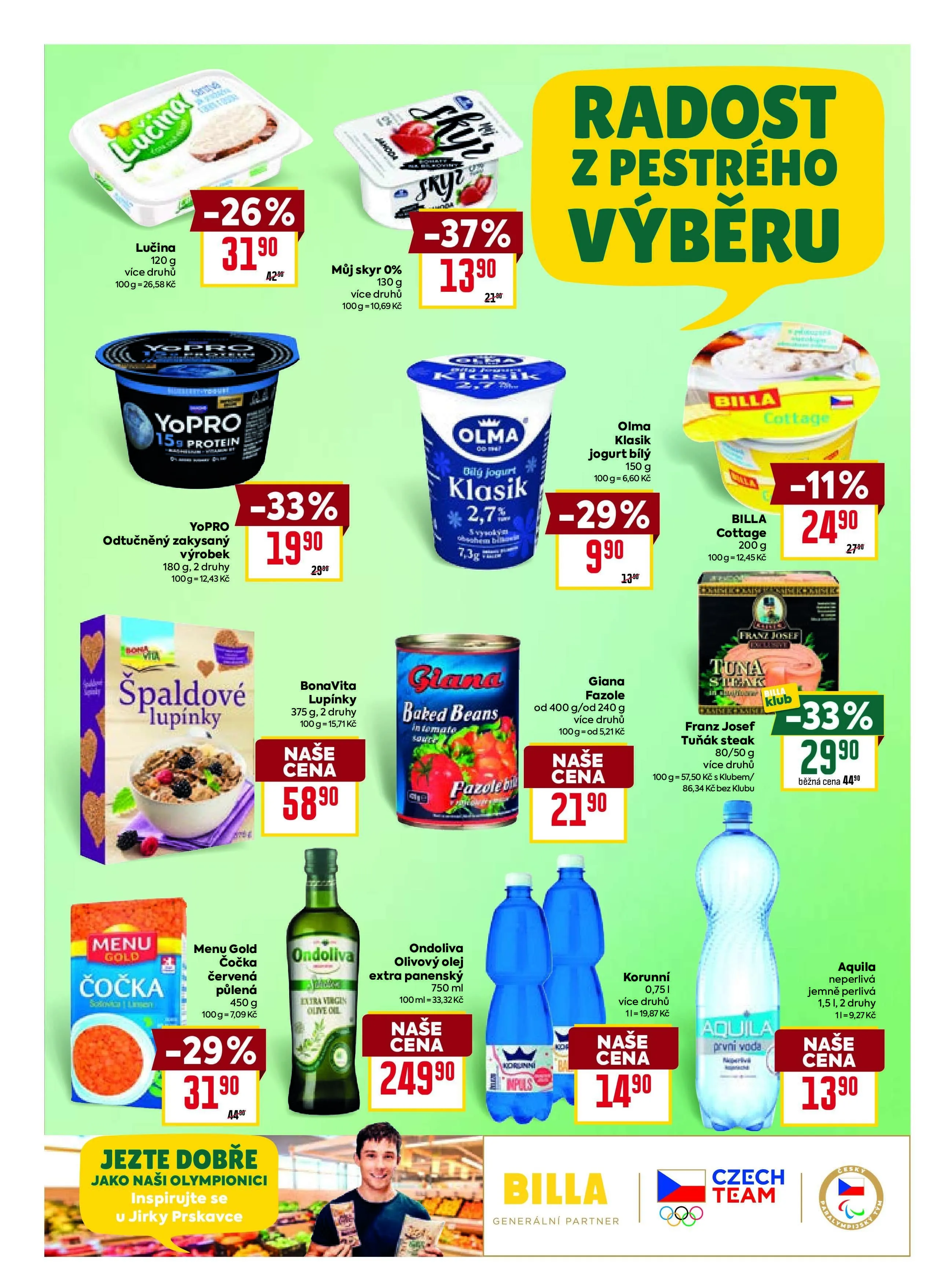 V letáku obchodu BILLA najdete široký výběr kvalitních produktů za skvělé ceny. Mezi nimi se objevují špaldové lupínky, které jsou ideální pro zdravou snídani nebo svačinu. Dále nabízíme čočku v praktickém balení, která je skvělým základem pro výživná jídla. Nezapomeňte také na naše speciální nabídky, které potěší každého milovníka dobrého jídla. Využijte akční ceny a jezte dobře jako naši olympionici!