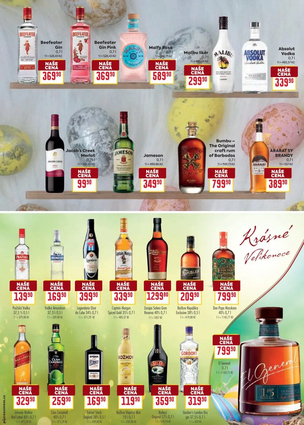 V letáku obchodu BILLA najdete širokou nabídku alkoholických nápojů za skvělé ceny. Mezi nimi se objevují populární značky jako Beefeater gin, který je k dispozici za 369,90 Kč, a jeho variantu Beefeater Pink za stejnou cenu. Milovníci whiskey ocení Jameson za 349,90 Kč a Absolut vodka za 339,90 Kč.