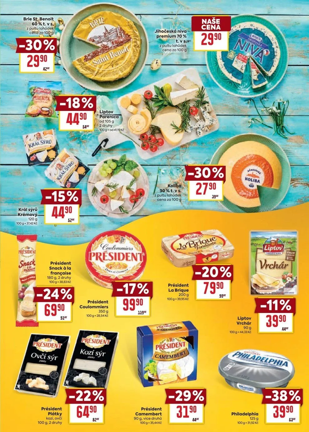 Nezapomeňte na Krále sýrů, krémový sýr Liptov a President Coulommiers, které jsou také v akci.