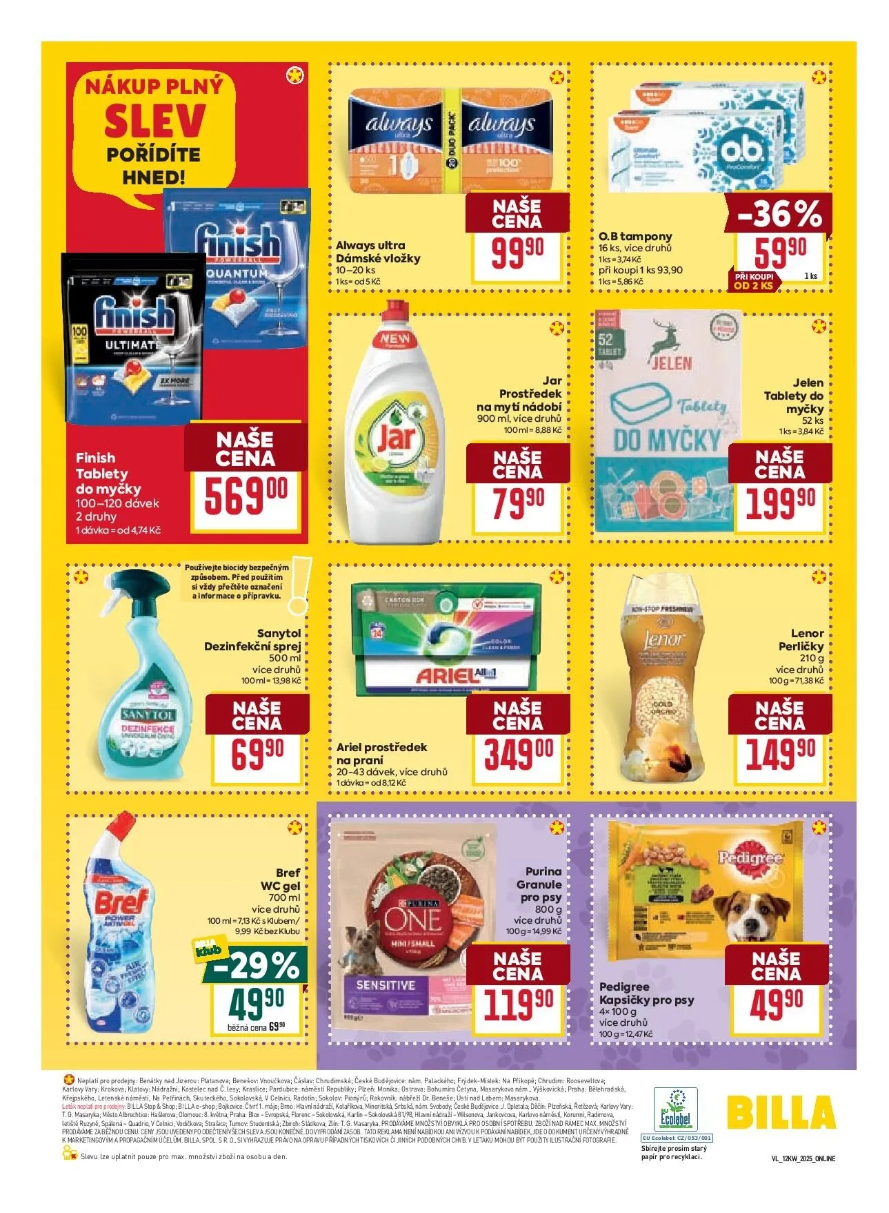 Nezapomeňte také na kapsičky pro psy Pedigree a tampony Jelen.