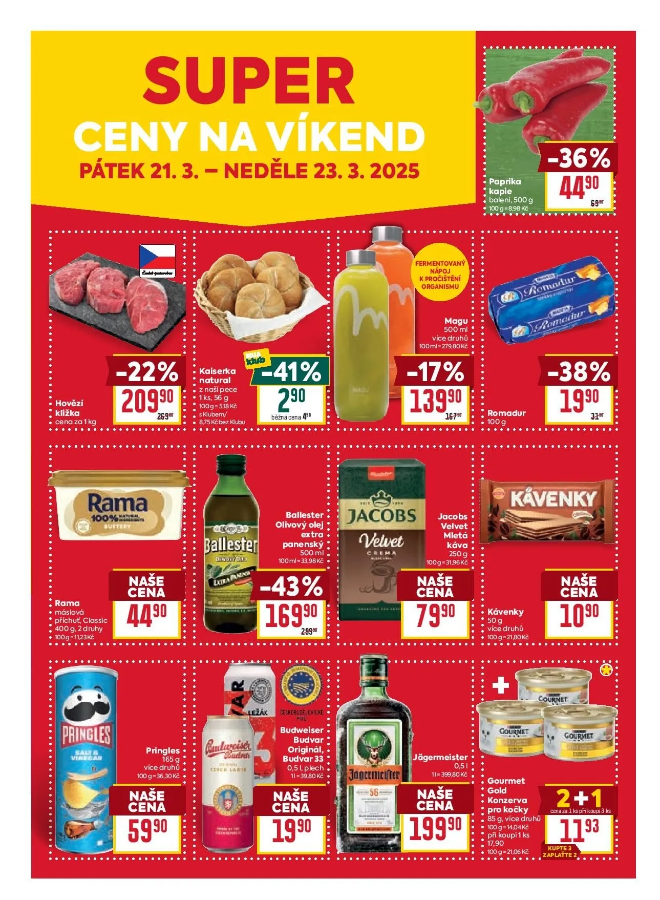 V letáku obchodu BILLA na víkend od pátku 21.3. do neděle 23.3.2025 najdete skvělé akční nabídky.