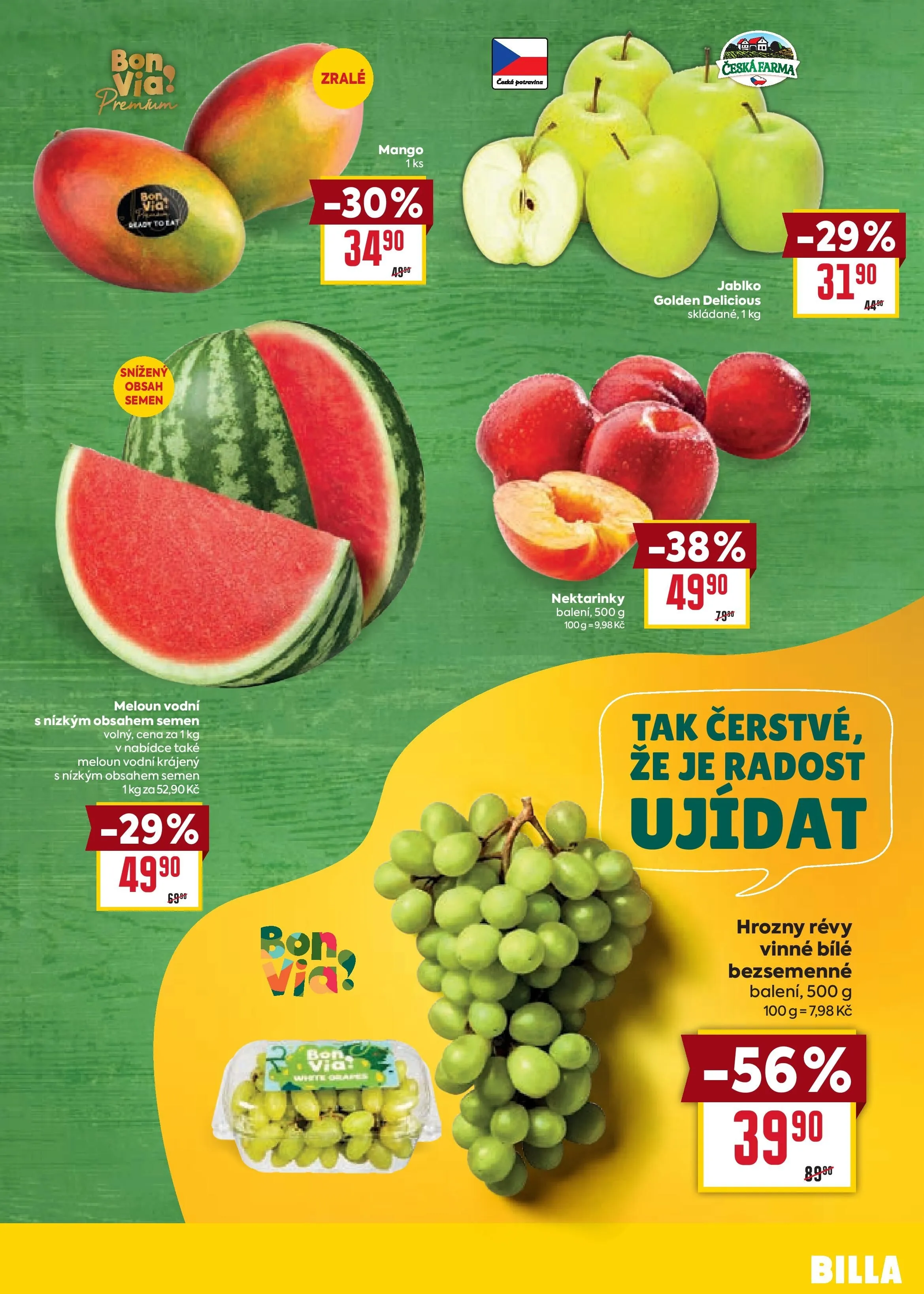 Nezapomeňte na zralé mango a nektarinky v balení po 500 g, které jsou nyní se slevou 29 %.