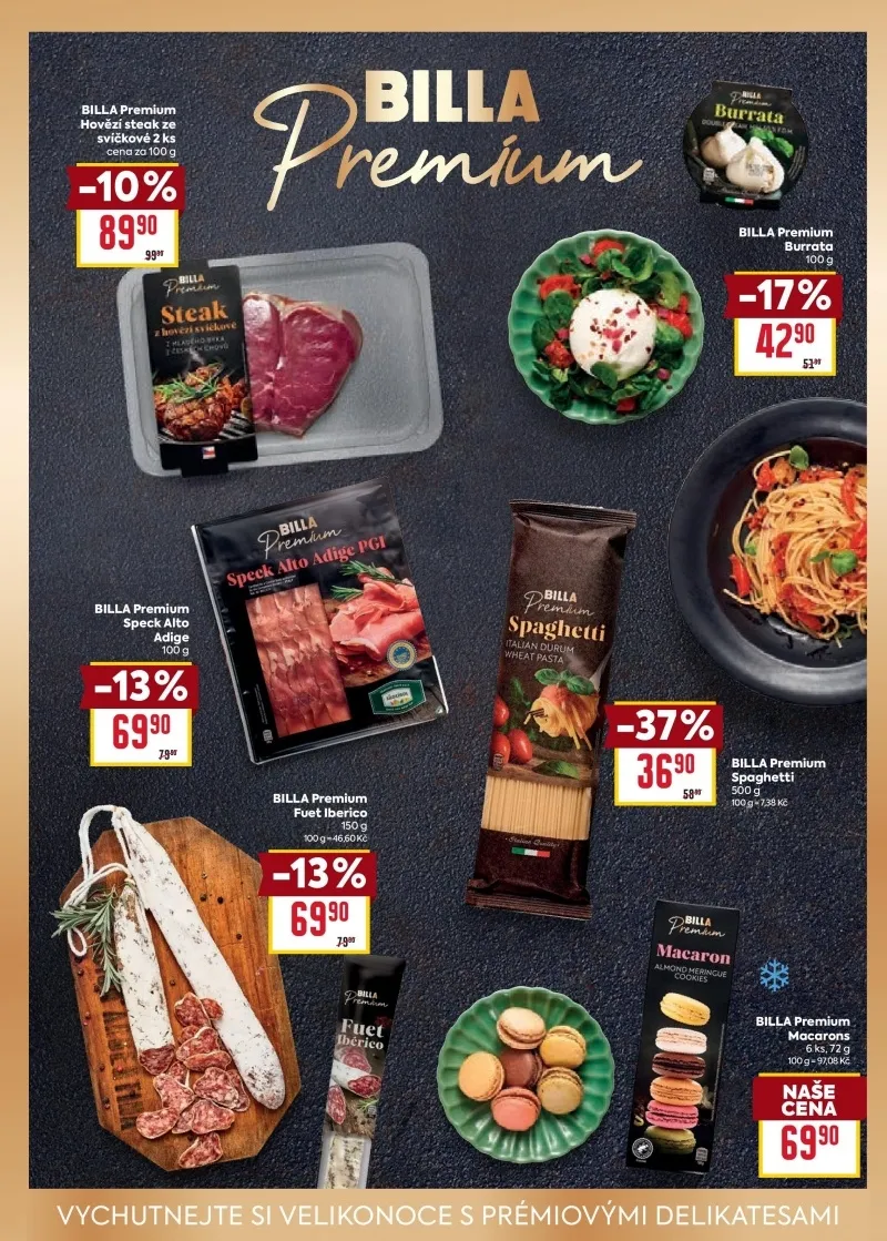 V letáku obchodu BILLA najdete širokou nabídku prémiových produktů, které potěší vaše chuťové pohárky. Mezi nimi se nachází kvalitní speck a fuet iberico, ideální pro milovníky uzenin. Dále si můžete vychutnat špagety z řady BILLA Premium, které jsou perfektní volbou pro přípravu tradičních italských pokrmů. Nezapomeňte také na speciální velikonoční delikatesy, které obohatí vaše sváteční stoly. Využijte akční ceny a dopřejte si to nejlepší!