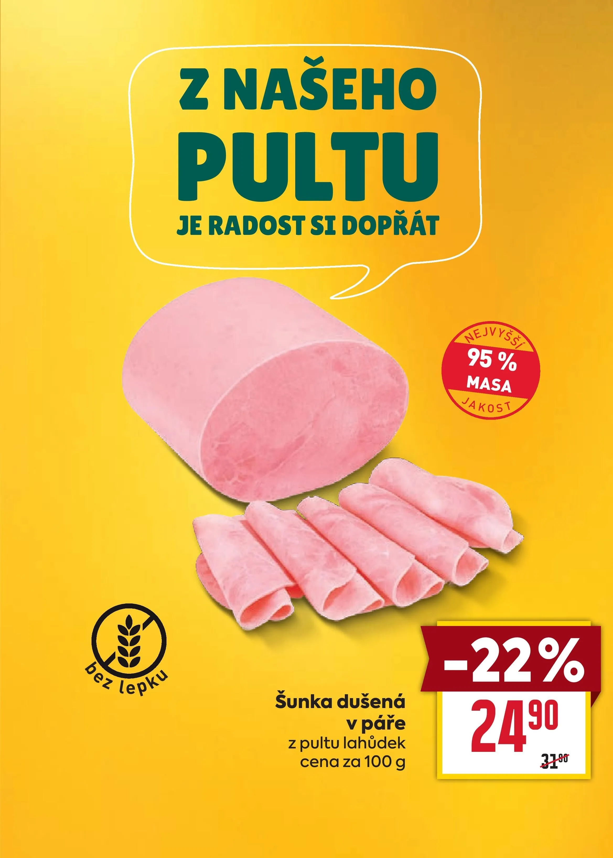 V letáku obchodu BILLA najdete skvělou nabídku na šunku dušenou v páře z pultu lahůdek. Tato lahodná šunka je ideální volbou pro všechny, kteří si chtějí dopřát kvalitní a chutné maso. Aktuálně je cena za 100 g snížena o 22%, což z ní dělá výhodnou nabídku. Nezapomeňte si ji přidat do svého nákupního seznamu!