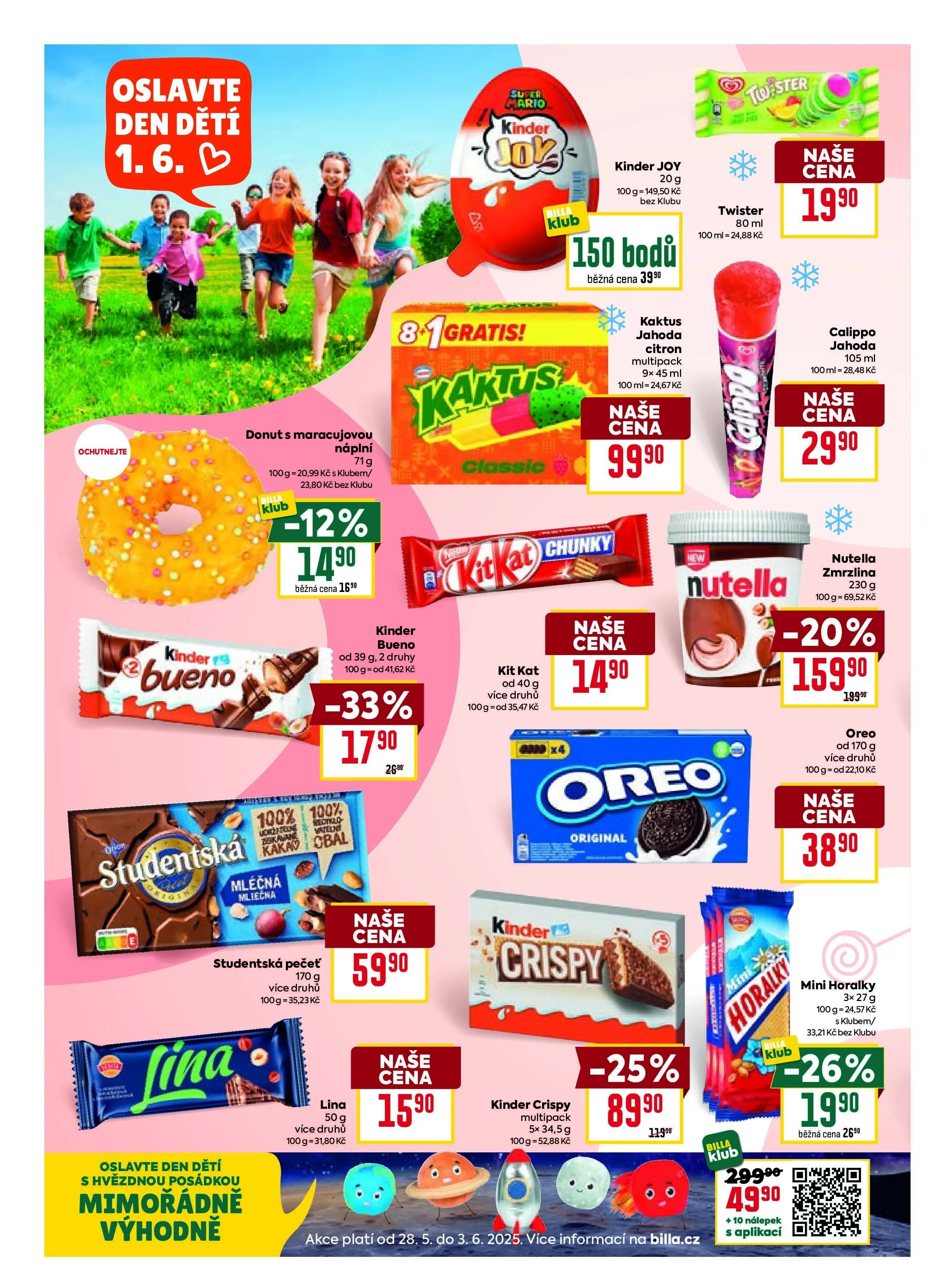V letáku BILLA najdete produkty jako Kinder Joy a Kinder, které potěší každého malého oslavence.