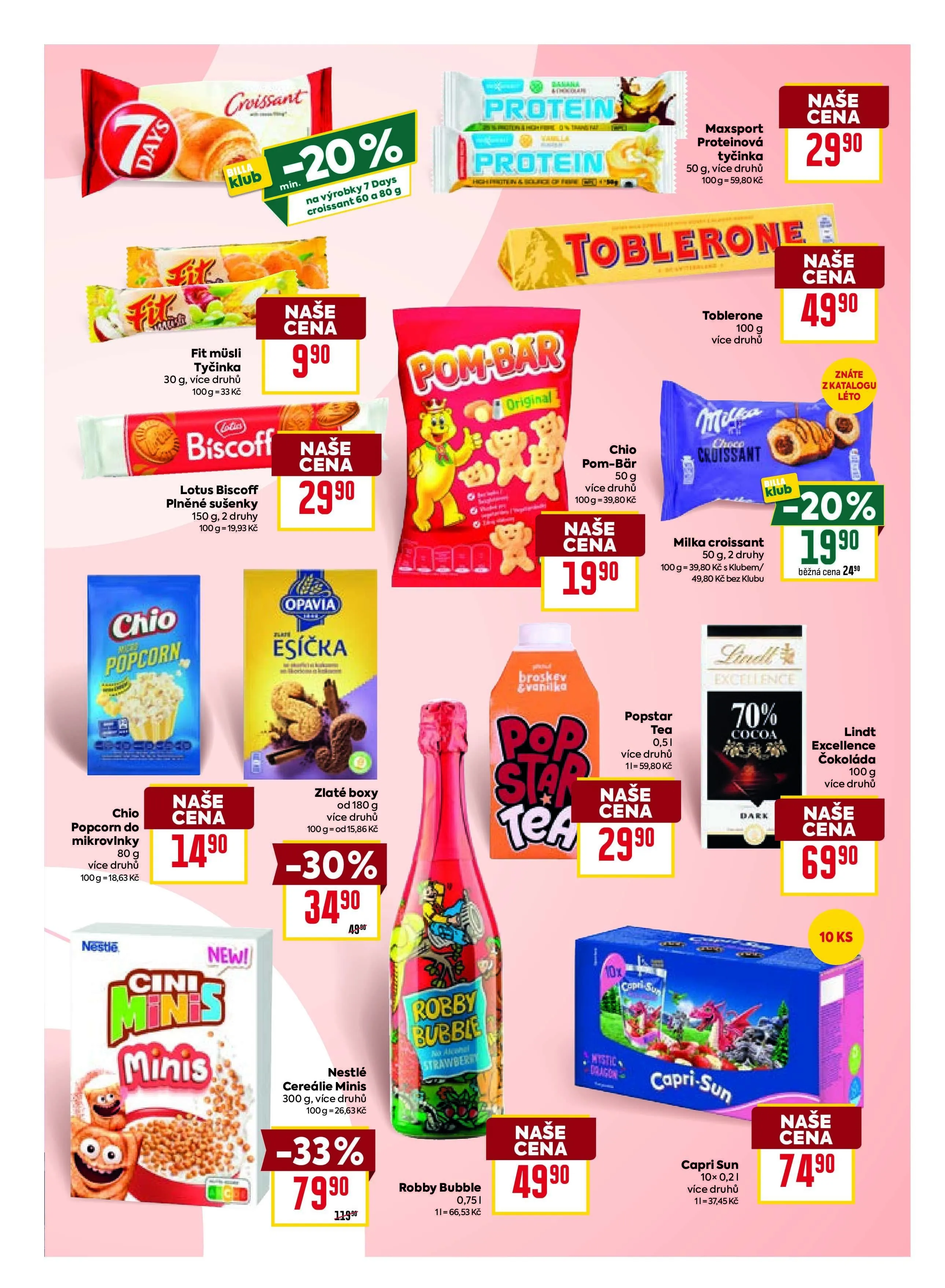 V letáku obchodu BILLA najdete širokou nabídku produktů za skvělé ceny. Mezi nimi se objevují fit tyčinky o hmotnosti 30 g za 29,90 Kč a lahodné sušenky Opavia v zlatém boxu se slevou 30 % za 34,90 Kč. Nezapomeňte také na sportovní tyčinky Robby Bubb a Milka croissanty, které jsou k dostání za 19,90 Kč. Pro milovníky čokolády máme Cocoa za 49,90 Kč a oblíbené Cap Sun nápoje v balení po 10 kusech za 69,90 Kč. Využijte také klubové slevy a nakupujte výhodně!