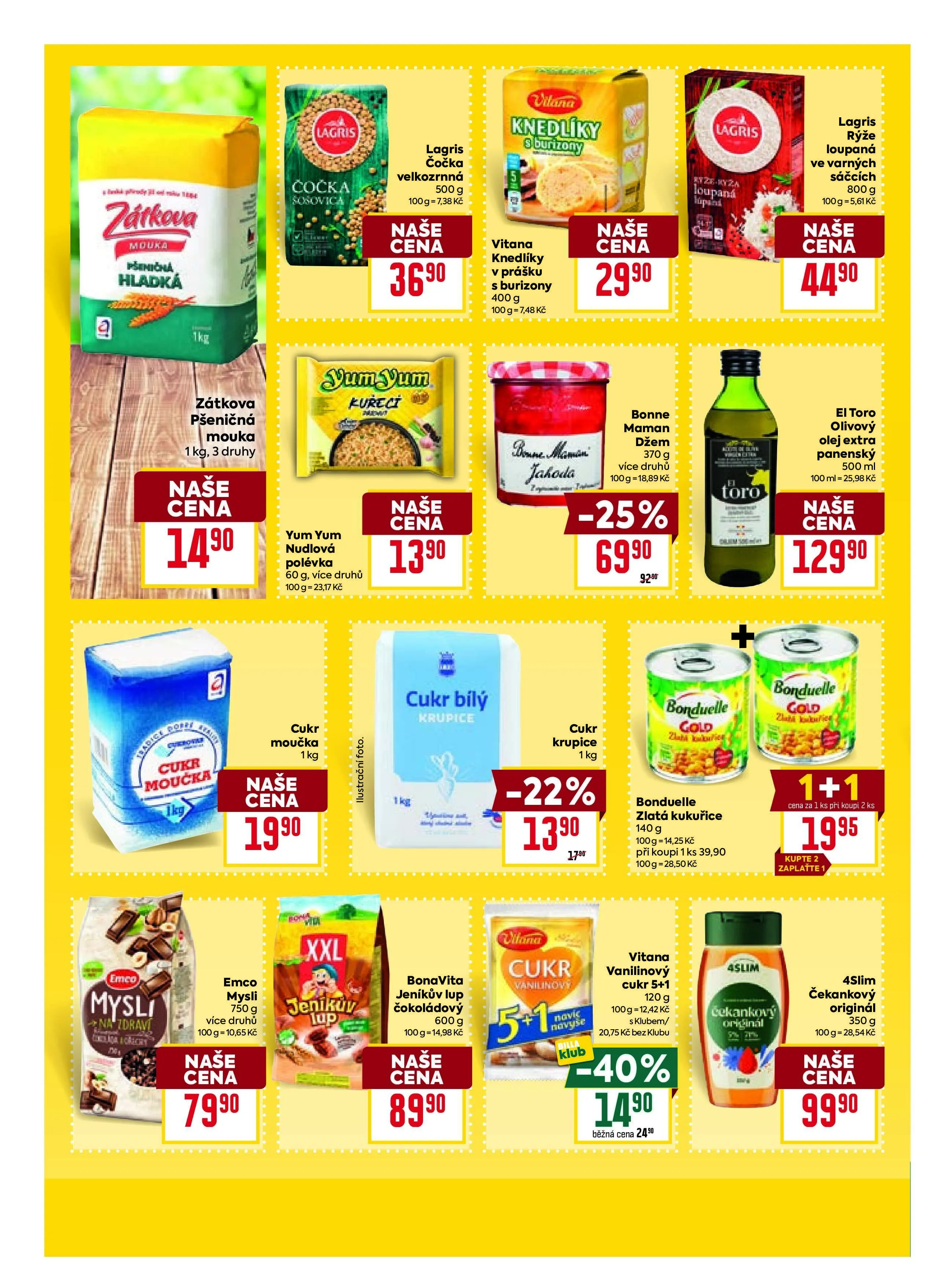 Dále nabízíme nudlové knedlíky za 29,90 Kč a bílý cukr za 13,90 Kč.