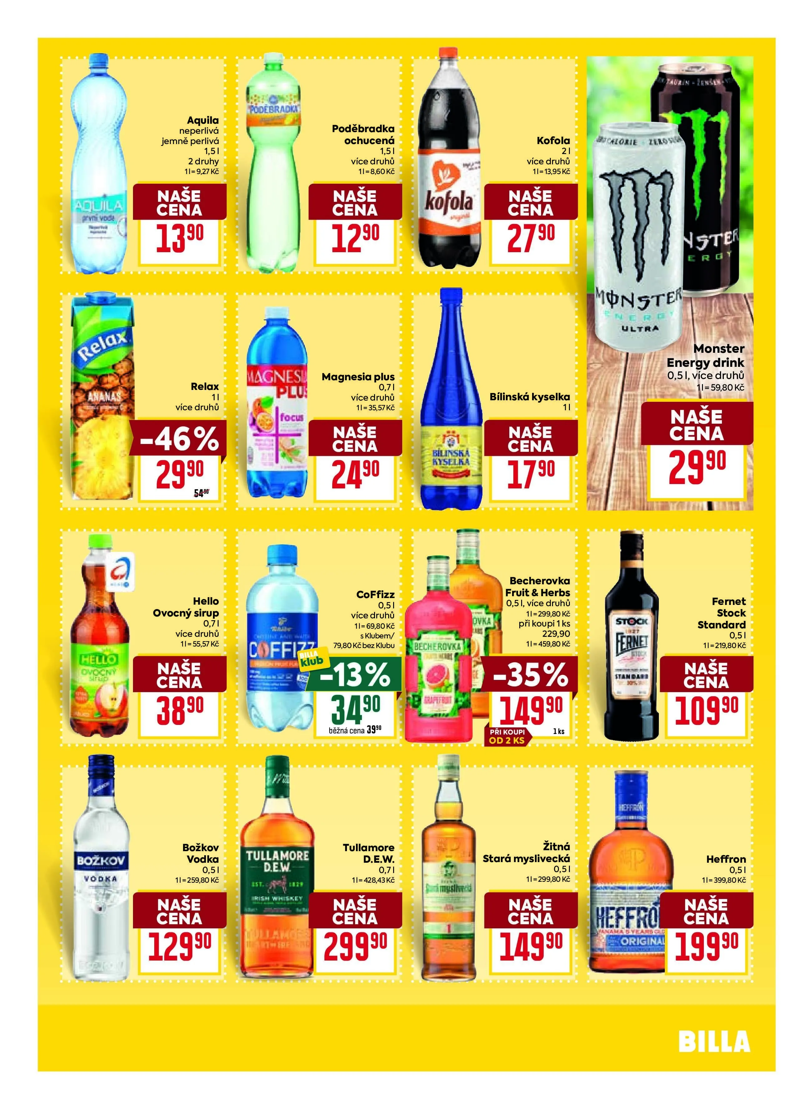 V letáku obchodu BILLA najdete širokou nabídku produktů za skvělé ceny. Mezi nimi se objevují oblíbené nápoje jako Kofola a Bílinská kyselka, které jsou k dispozici za ceny od 13,90 Kč. Pro milovníky alkoholu máme v nabídce Tullamore Dew a Stará myslivecká, které si můžete pořídit za 129,90 Kč a 199,90 Kč. Nezapomněli jsme ani na energetické nápoje, které jsou k dostání za 29,90 Kč. Přijďte si vybrat z naší pestré nabídky a využijte skvělé ceny!
