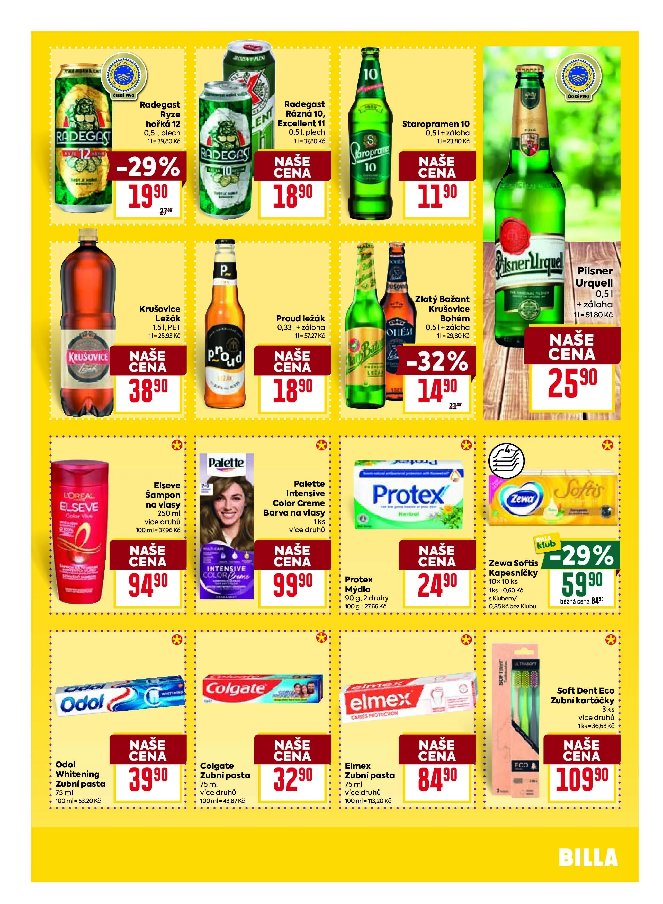 V letáku obchodu BILLA najdete širokou nabídku produktů za skvělé ceny. Mezi nimi se objevuje zubní pasta Whitening za 75 Kč, rýže hořká za 49 Kč, a plechovka Pilsner Urquell za 19 Kč. Dále nabízíme barvu na vlasy za 249 Kč a kosmetické produkty Zewa za 39 Kč. Nezapomeňte také na ekologickou zubní pastu Soft Dent Eco za 109 Kč. Využijte našich výhodných cen a nakupujte chytře!