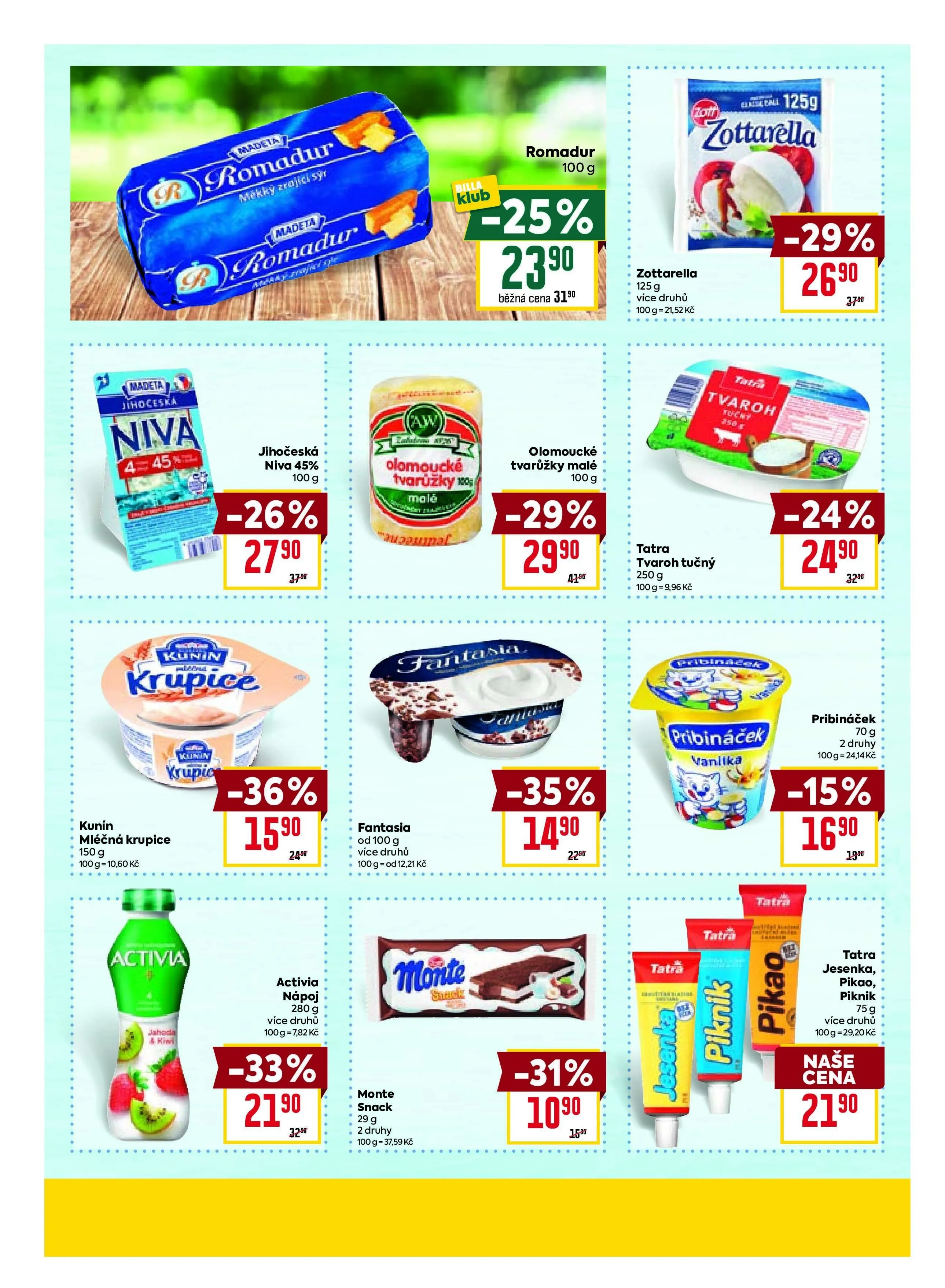 V letáku obchodu BILLA najdete širokou nabídku kvalitních produktů za výhodné ceny. Například m krupice je nyní k dispozici se slevou 26 %, což z ní dělá skvělou volbu pro vaše vaření. Niva a Romadur jsou také v akci, s cenami sníženými až o 33 %. Nezapomeňte na piknikové produkty, které jsou ideální pro letní grilování. Všechny tyto produkty jsou pečlivě vybrány, abyste si mohli užít skvělé chutě za příznivé ceny. Navštivte BILLA a objevte další skvělé nabídky!