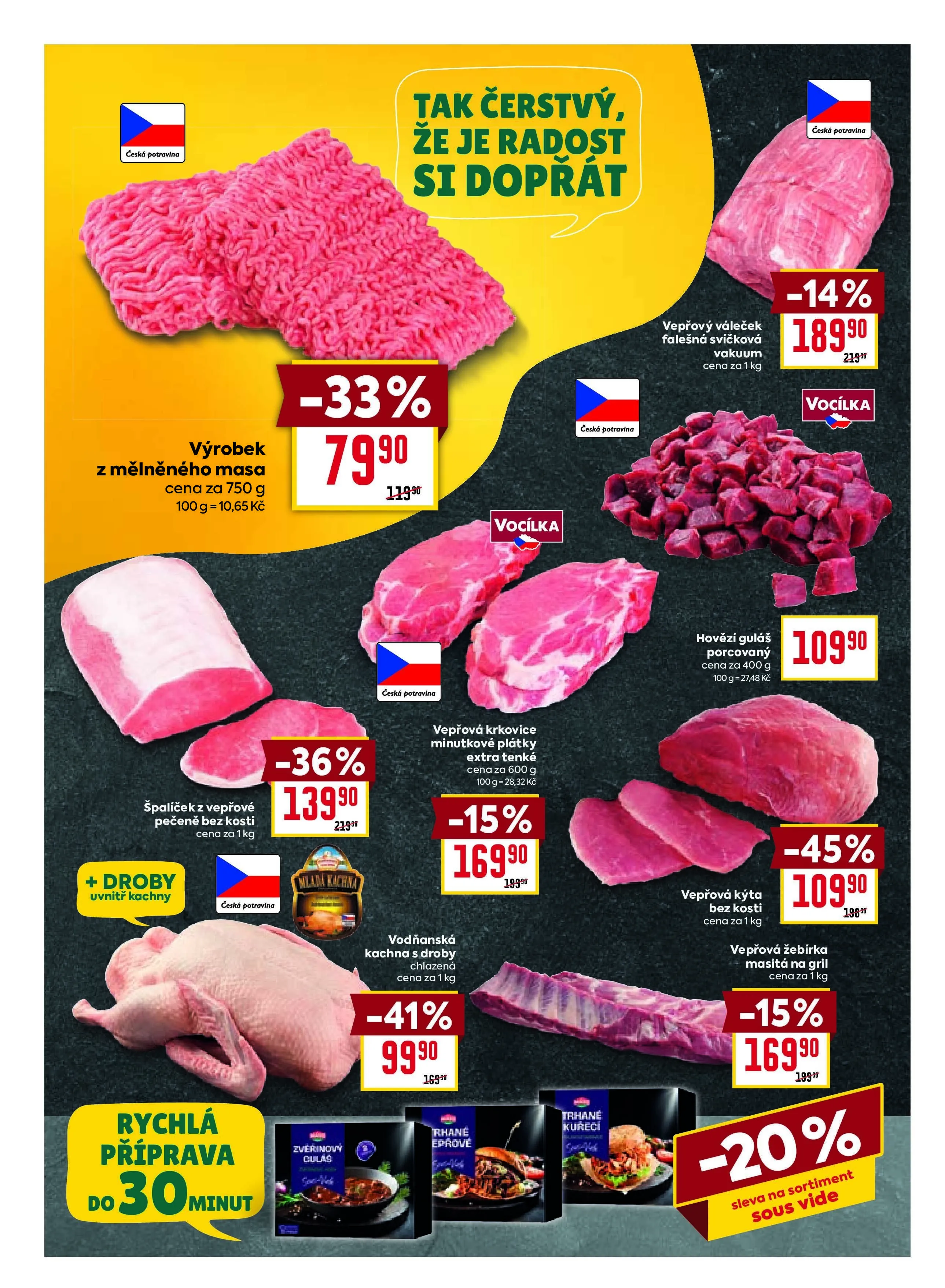 Dále nabízíme vepřový falešný svíčkovou porcovou za 16990 Kč za 400 g, a to s 36% slevou.
