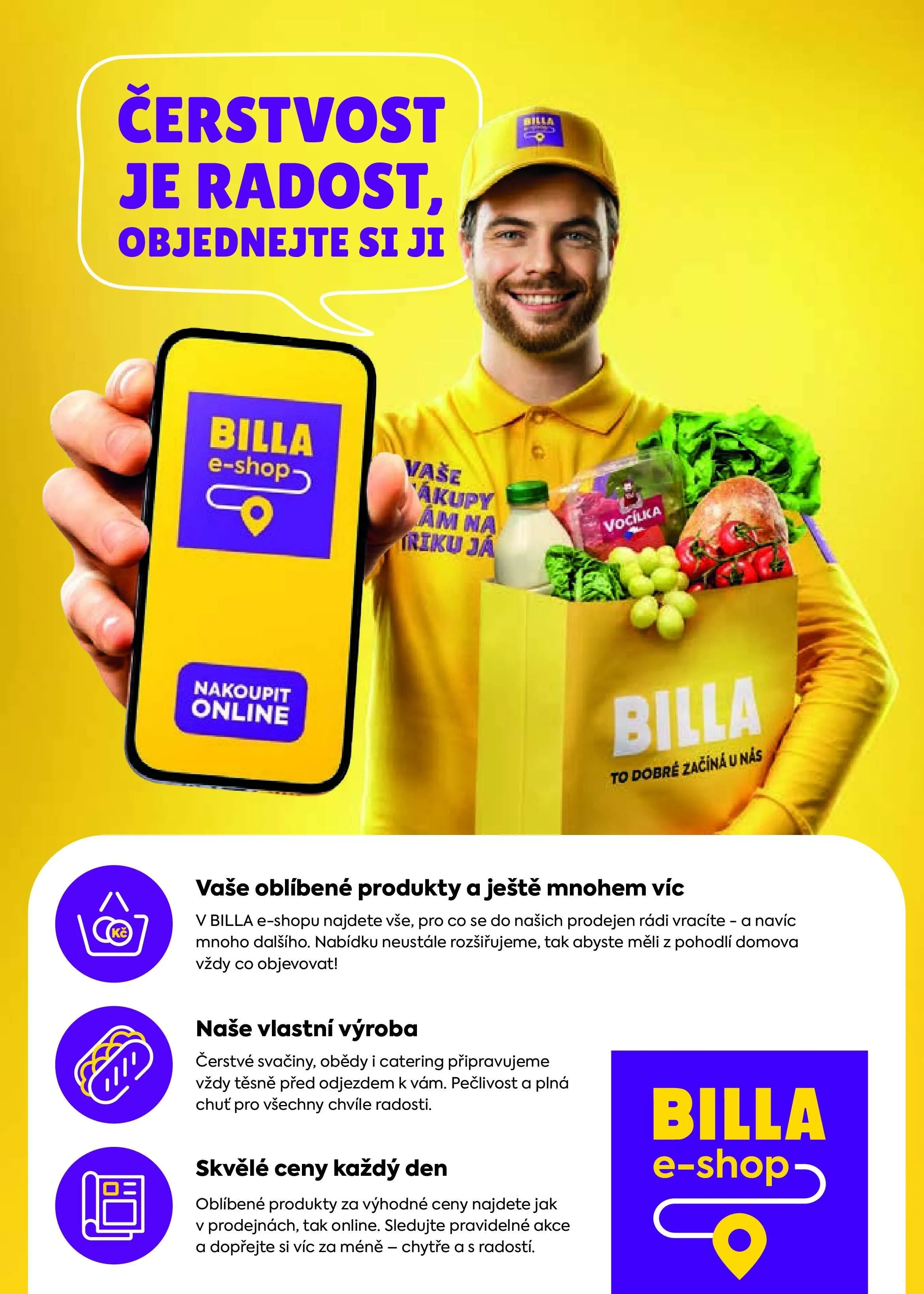 V obchodu BILLA najdete širokou nabídku čerstvých produktů, které vám přinesou radost. Objednejte si své oblíbené potraviny online a objevte ještě více skvělých položek, které neustále přidáváme do našeho e-shopu. Naše vlastní výroba zajišťuje čerstvé svačiny, obědy a catering, které jsou připravovány těsně před dodáním. Každý den nabízíme oblíbené produkty za výhodné ceny, ať už v prodejnách nebo online. Sledujte naše pravidelné akce a užijte si víc za méně. Nakupujte chytře a s radostí v BILLA e-shopu!